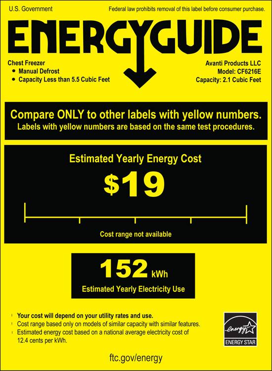 Keep extra frozen foods on hand with this 2.1 cu. ft. Avanti CF6216E chest freezer, which features electromechanical controls for easy temperature regulation. The flip-up lid with integrated handle lets you quickly access the contents.