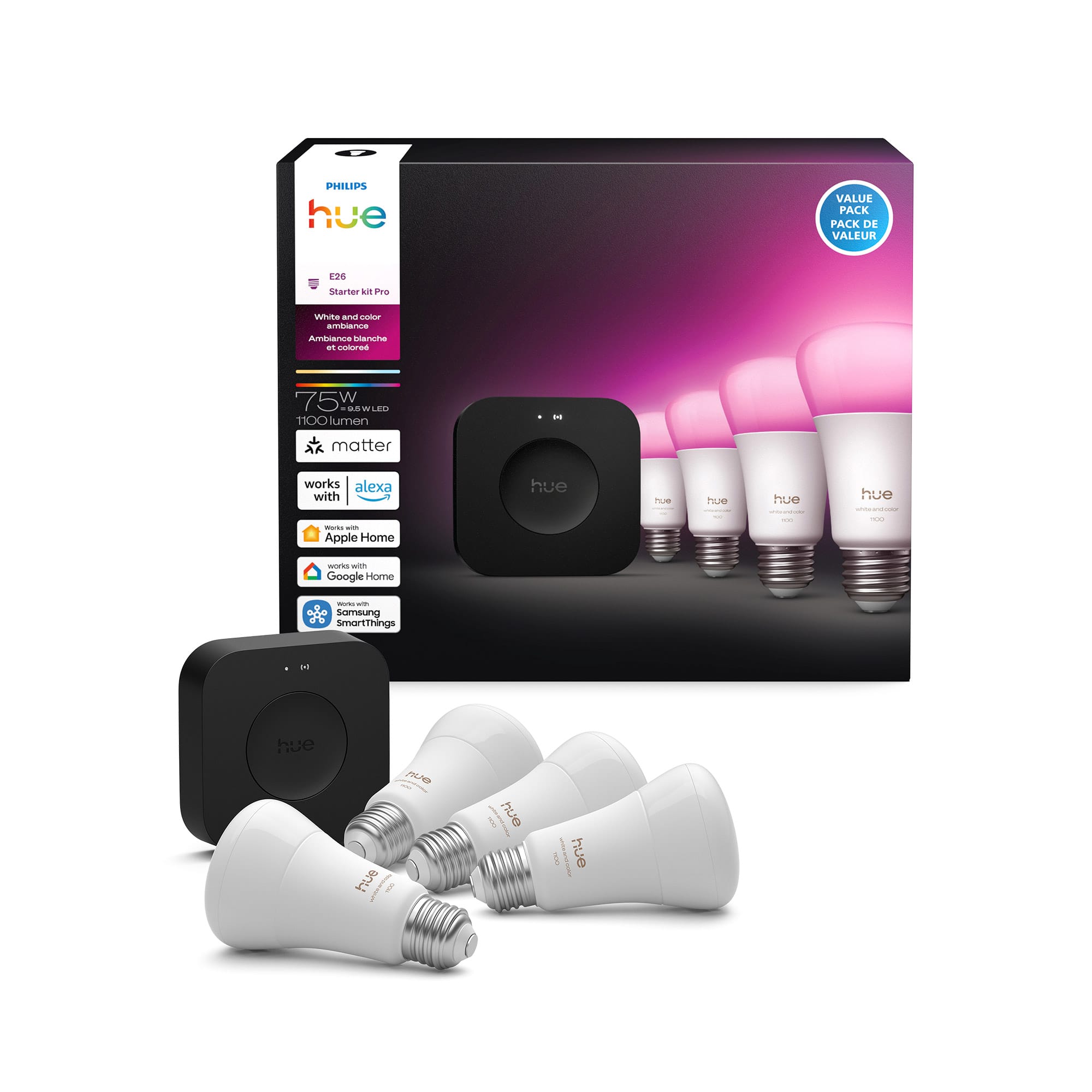 Customers love the Hue A19 75W Smart LED Starter Kit's ease of use, wide array of colors, and reliable performance with smart home systems like Apple HomeKit and Alexa. Many appreciate the straightforward setup and user-friendly app. While some find the product expensive, the positive experiences with color options and functionality outweigh this concern for many users.