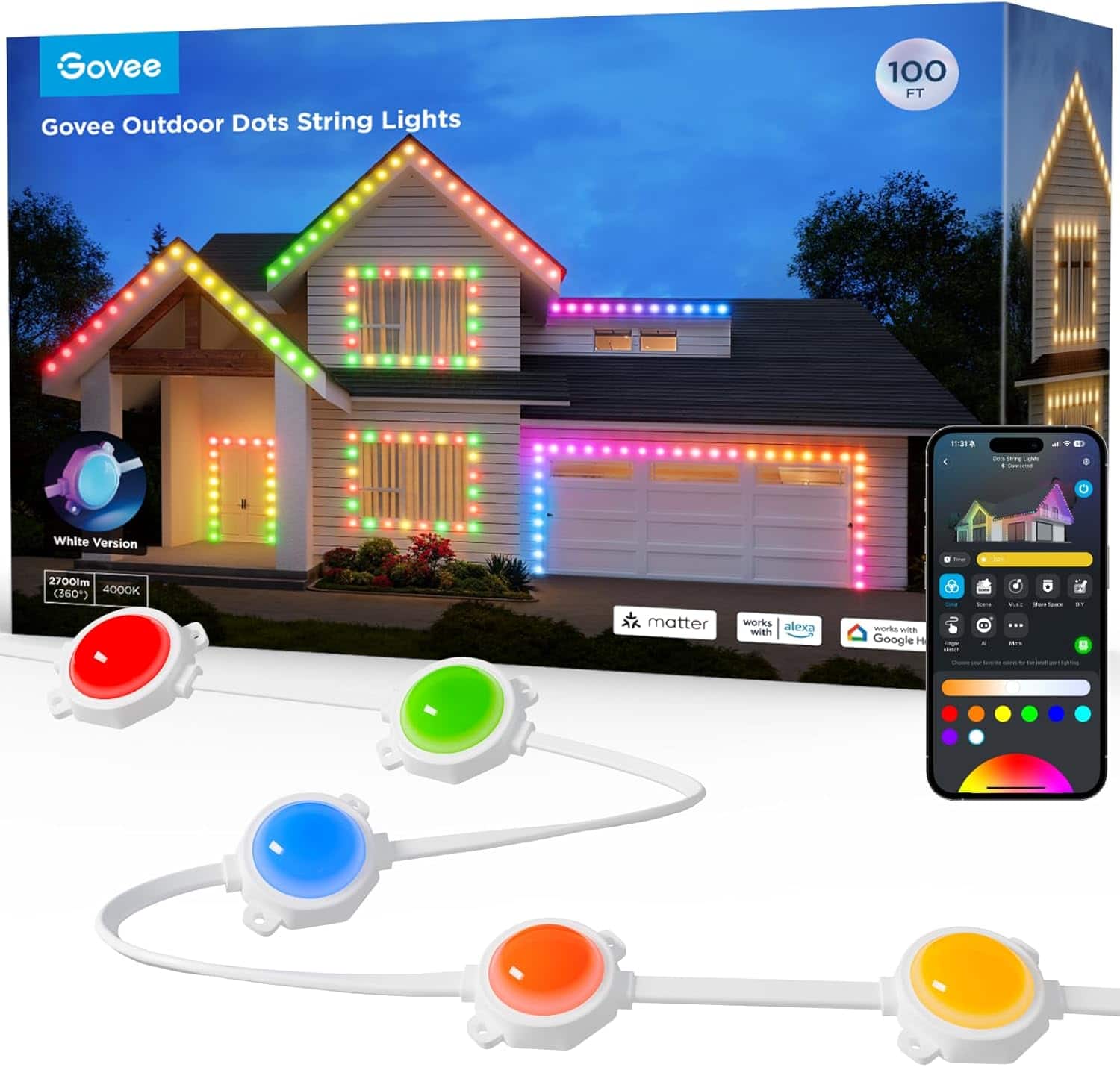 Customers regard the Wi-Fi RGBIC Outdoor Permanent String Lights 100ft as easy to install and set up, enhancing the appearance of homes. The brightness and quality are highly praised, along with the ease of use and extensive customization options available through the application.$329.99