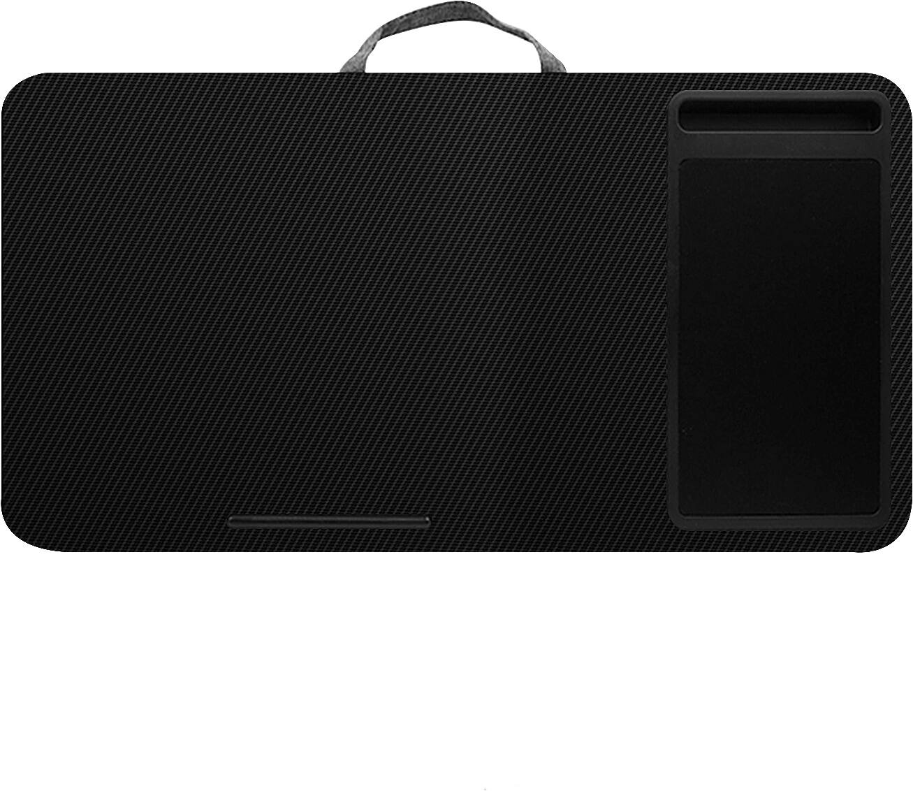 Customers commend the Titan Lap Desk for its comfort and ample size, making it suitable for laptops up to 17.3 inches. The inclusion of a smooth mouse pad, phone holder, and wrist rest are appreciated additions. While some users desire a more pronounced tilt angle, the desk effectively minimizes heat transfer from laptops.