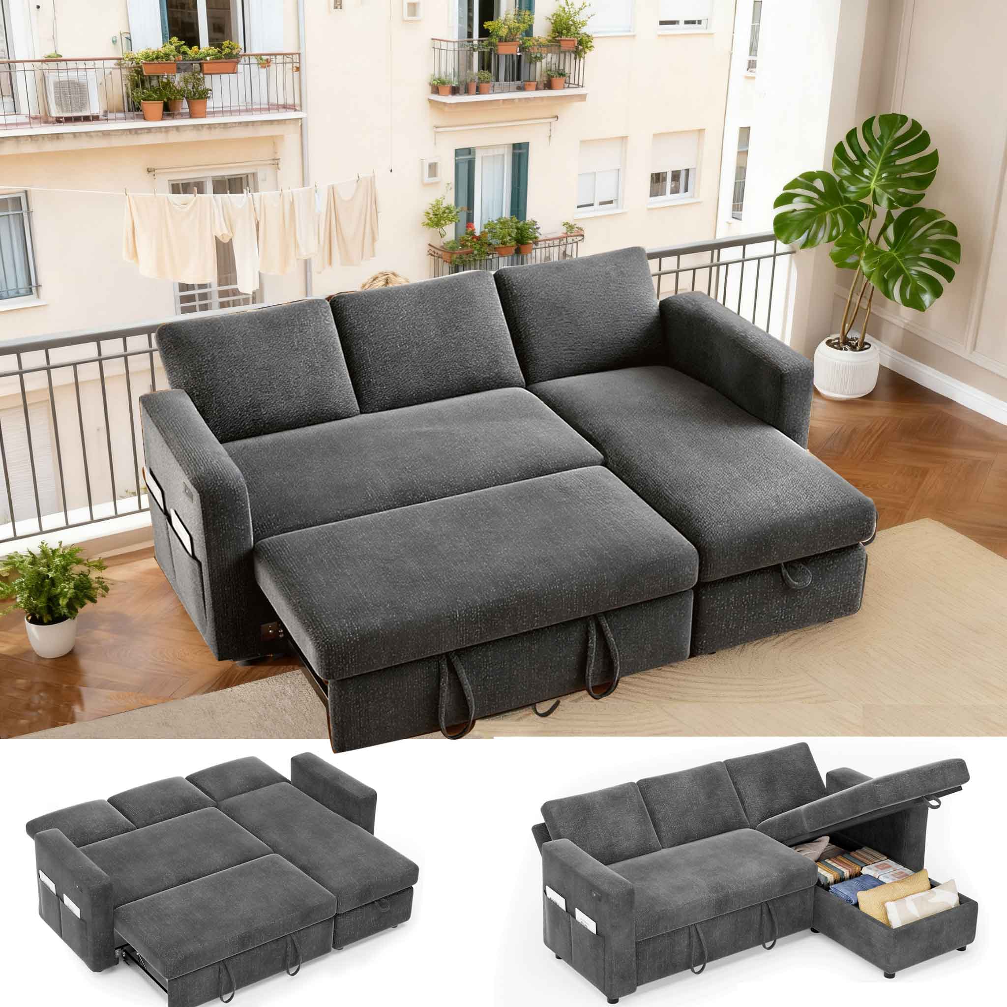 Vipbear 81" Sleeper Sofa Bed with Pull Out Bed L Shaped Sectional Sleeper Sofa, Tool-Free Assembly,Chenille Dark Gray
