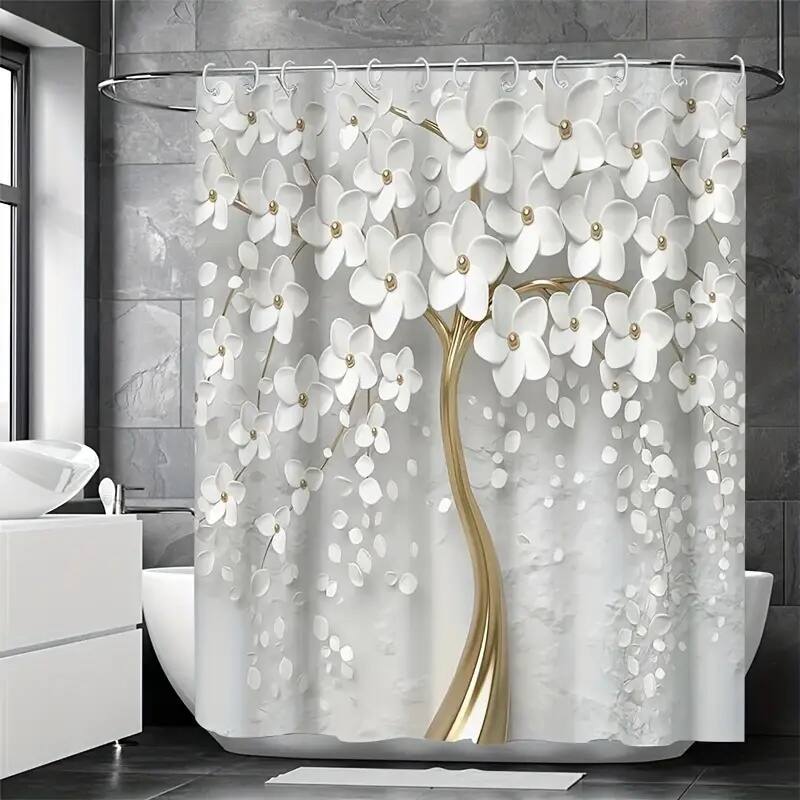 Floral Rain Design Bath Drape, Floral Shower Curtain, Includes 12 Hooks, Ideal for Bathroom Decoration