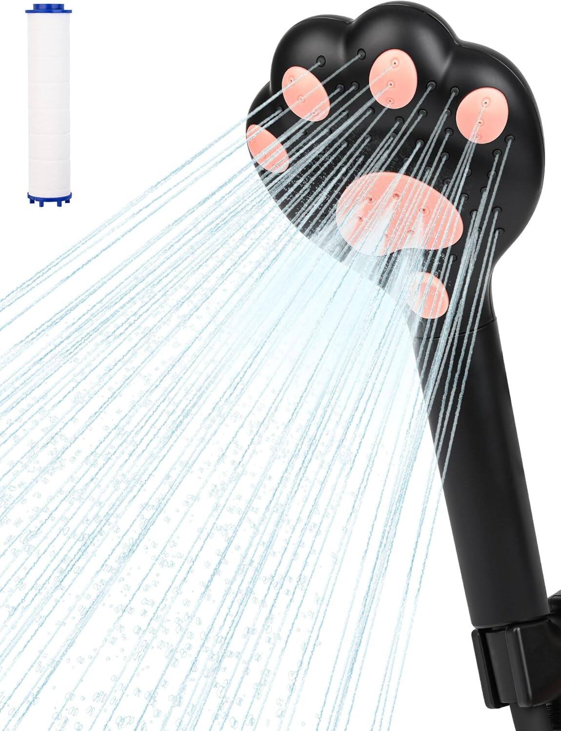 Adjustable Handheld Shower Head with Cat Paw Design,Filtered Shower Head,3 Spray Mode Showerhead with Filters (Black)