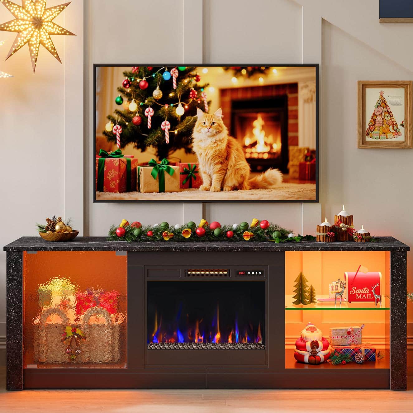 Customers often highlight the excellent heating performance of the 70" Gaming TV stand with a 36" fireplace. Reviewers mention that it heats the living room well. There were no negative comments provided.$299.99