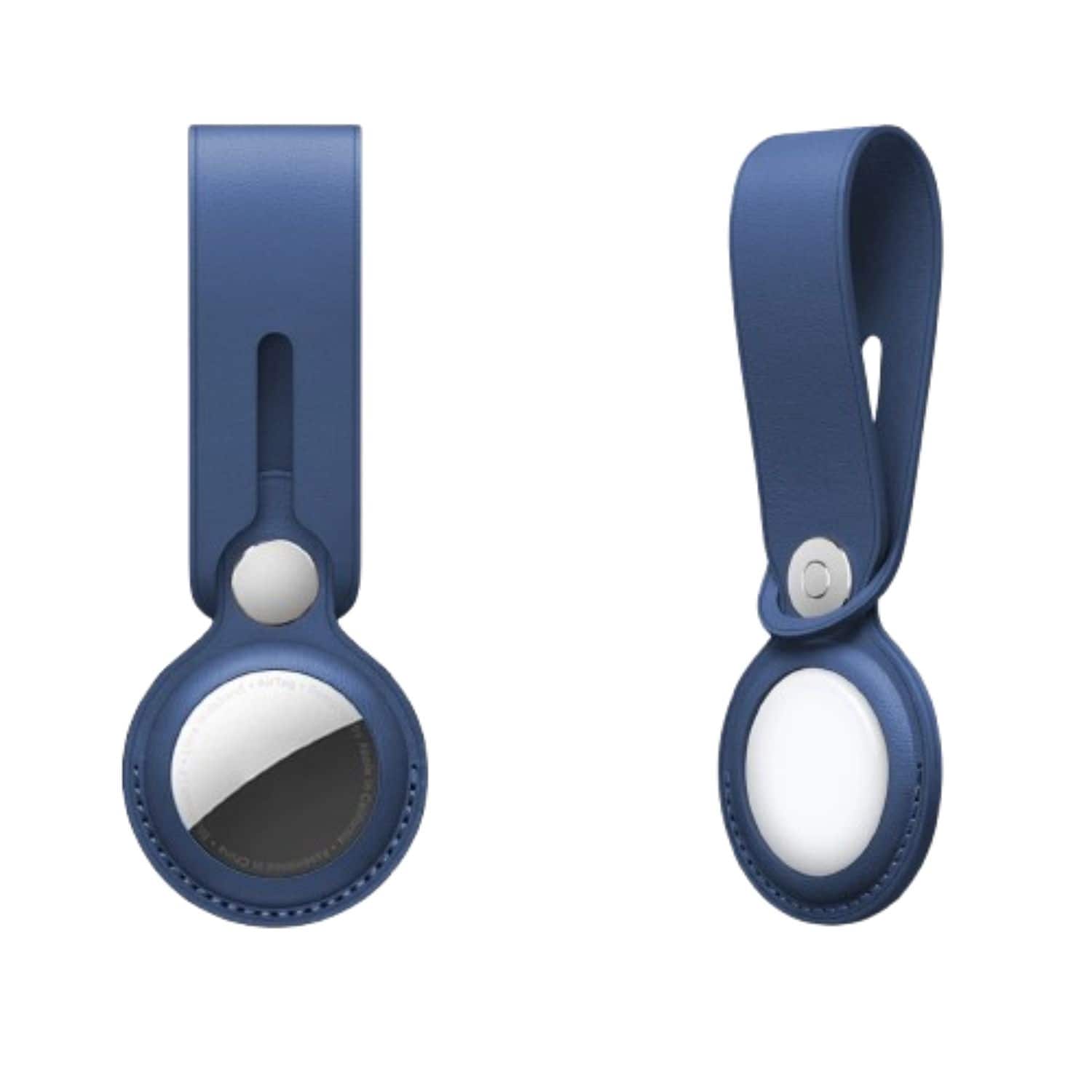 A-Navy Leather Case Cover with Keychain for Apple AirTag – Protective Pet Tracker Sleeve Shell Skin