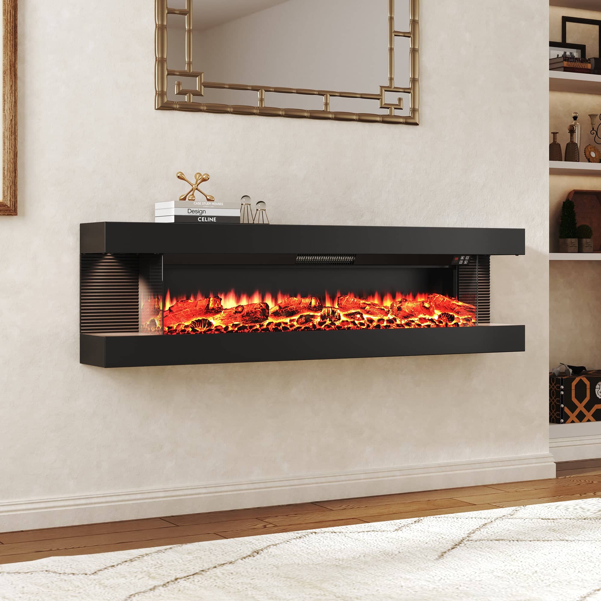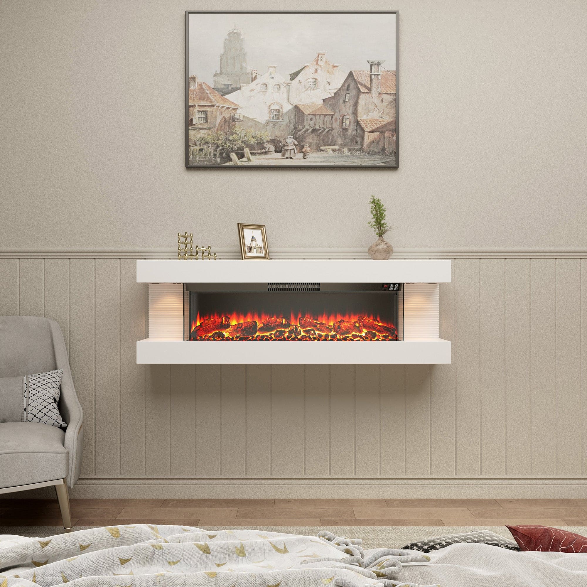 60" Electric Fireplace with Hanging LED Mantel and Remote Control