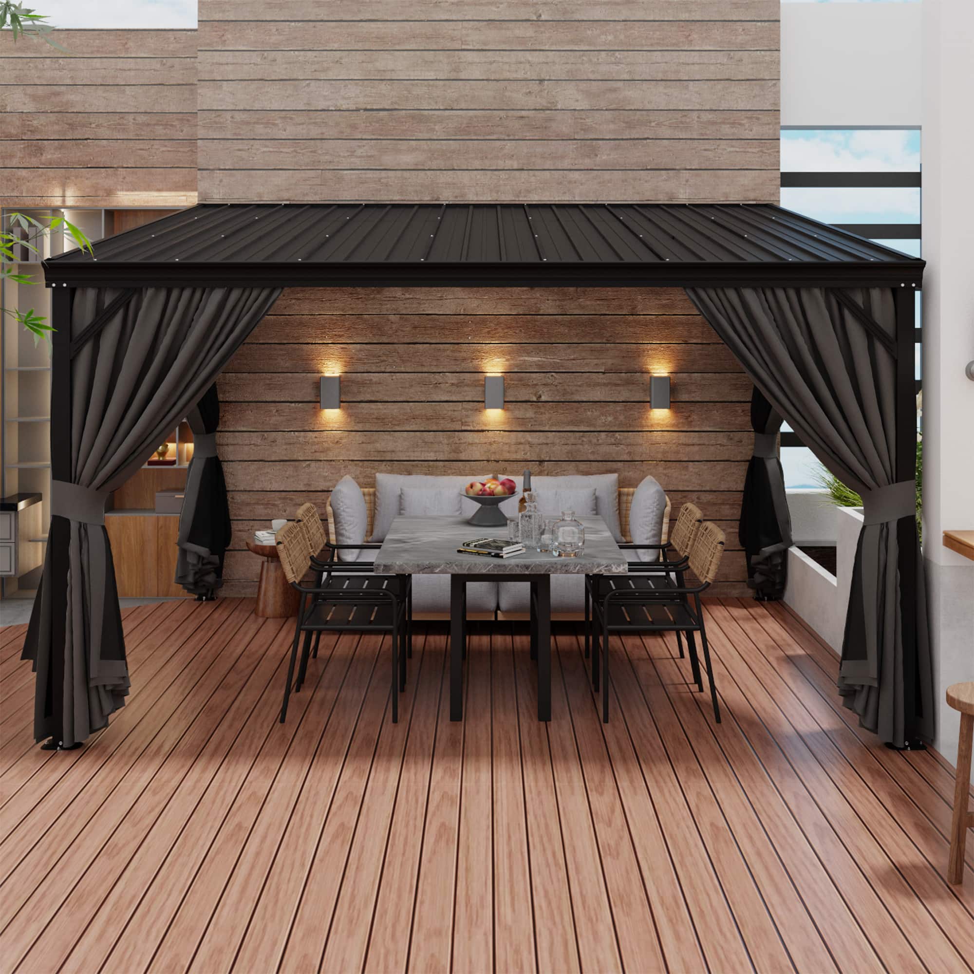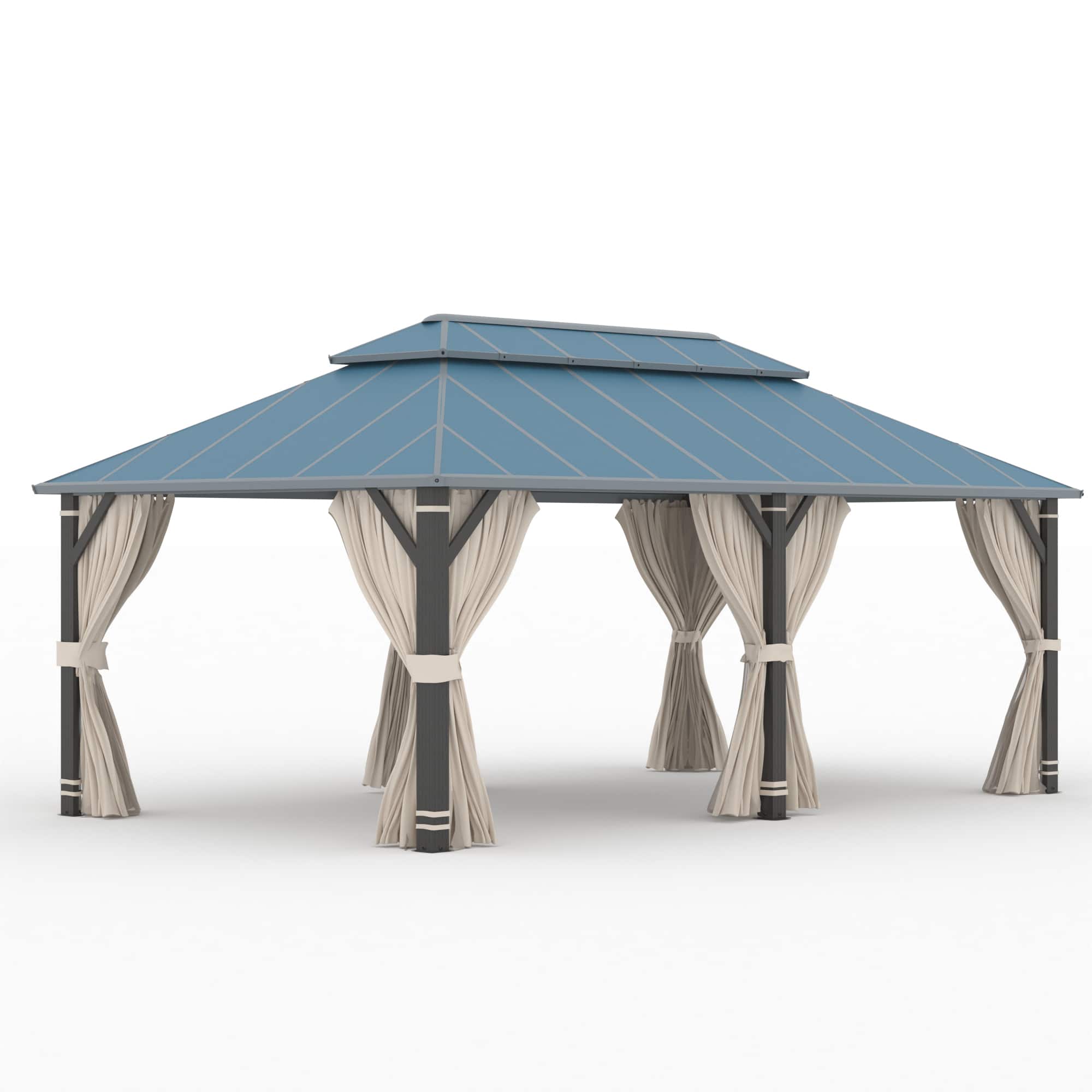 Heavy Duty Outdoor Gazebo with Steel Roof, Aluminum Frame, Curtains & Netting for Patio, Garden, Deck