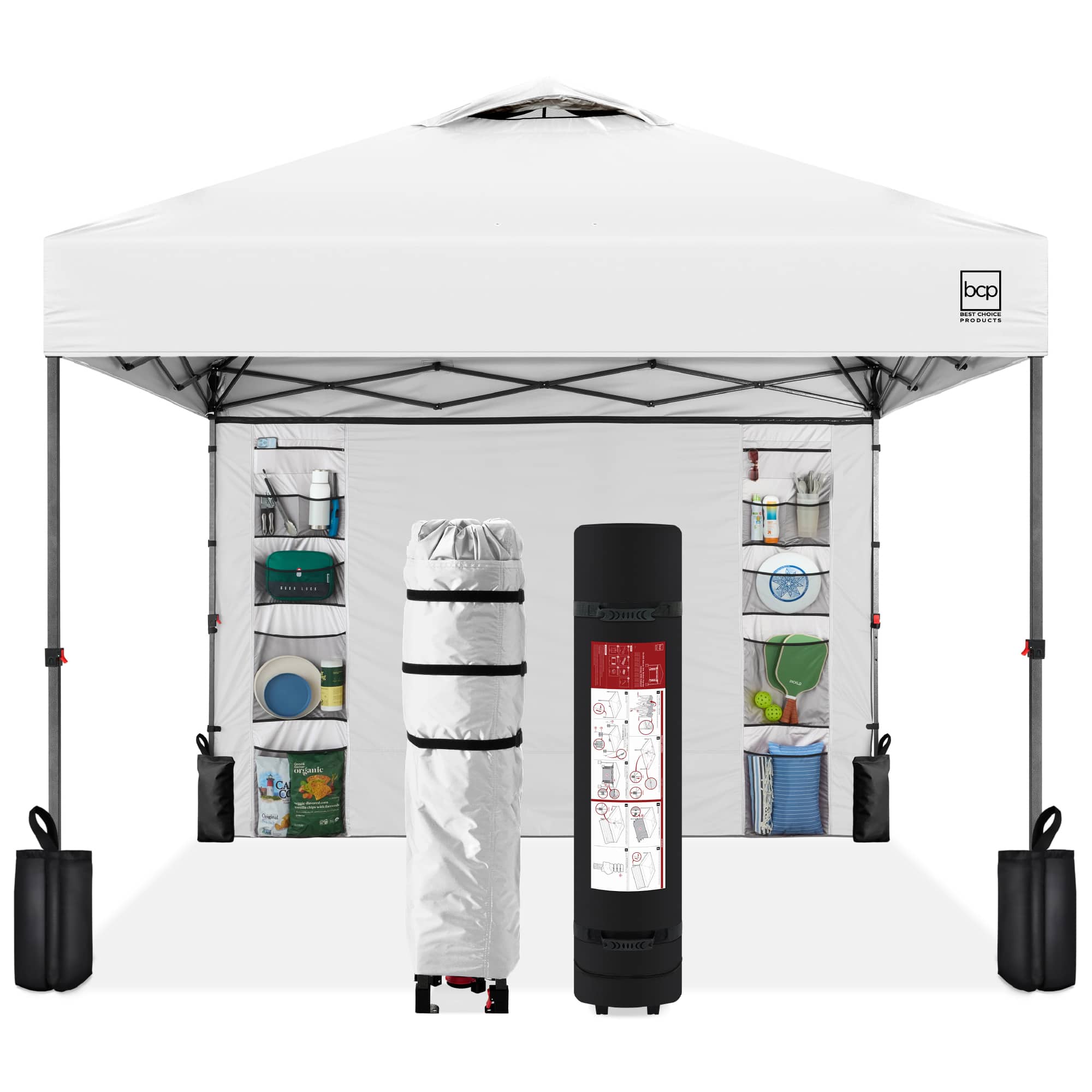 Best Choice Products 12x12ft Easy Setup Pop Up Canopy w/ 1-Button Setup, Wheeled Case, 4 Weight Bags - White