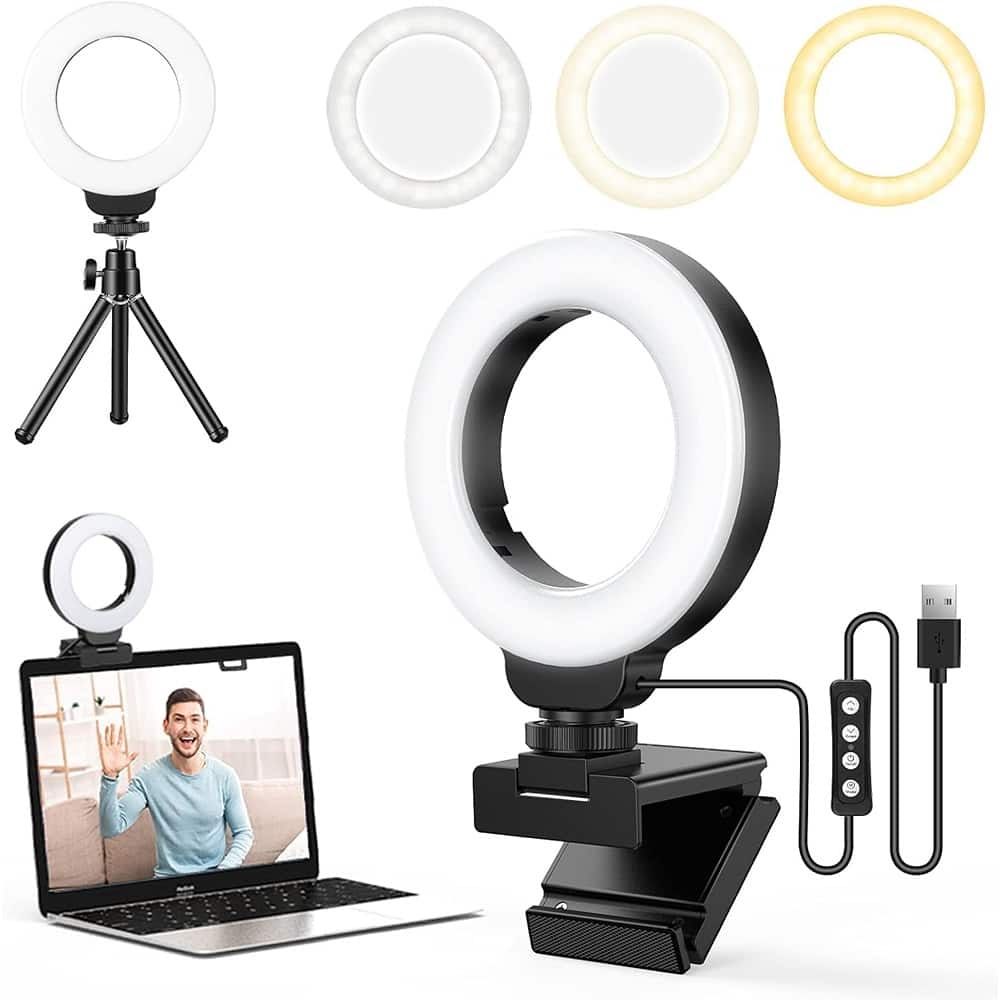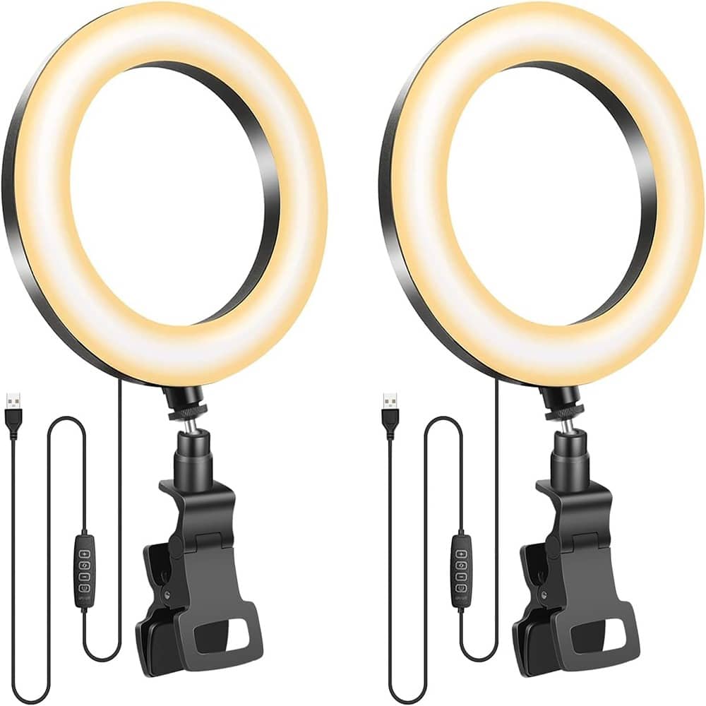 2 Pack Ring Light with Tripod Stand, Small LED Desk Circle Lights Clip-On for Laptop/Computer, Zoom Meeting, Video Confe
