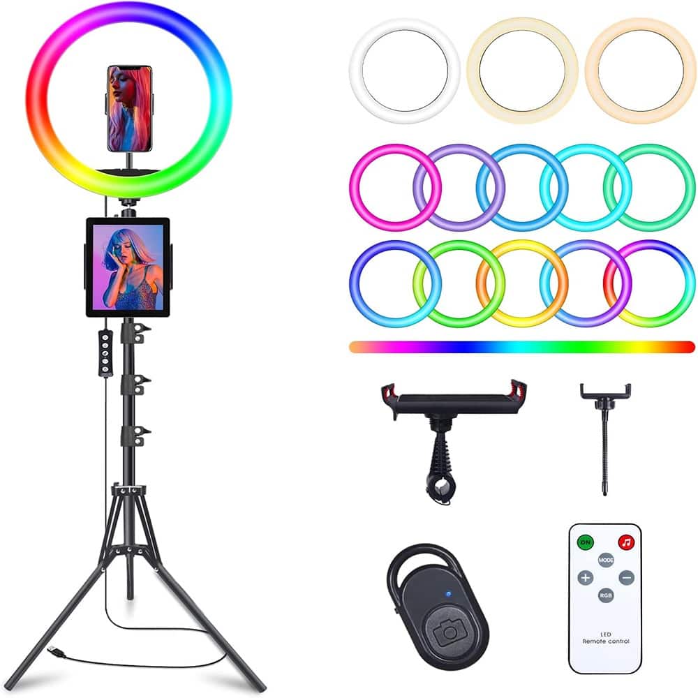 10.3" RGB Selfie Ring Light with Stand & Phone Holder – 29 Modes, Remote for iPhone & Android, Dimmable LED for Photo &