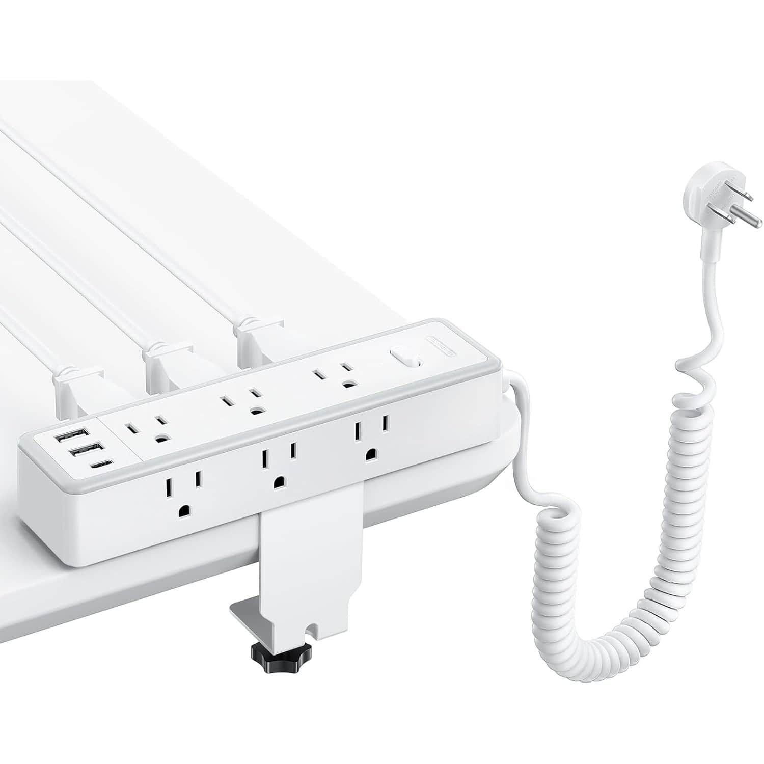 Desk Clamp Power Strip with 75W Fast Charging, 2 USB-C, 6 USB, 5 Outlets, Fits 1.6" Desk Edge – White
