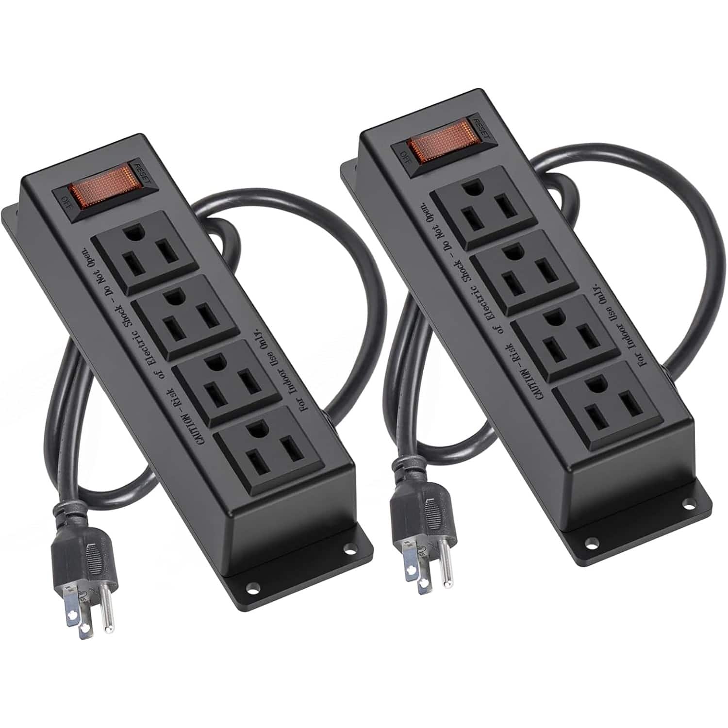 2-Pack Wall Mount Power Strips with 4 Outlets, Switch, 3FT Flat Plug Cord, Under Desk Mount – Black, Office/Home Use