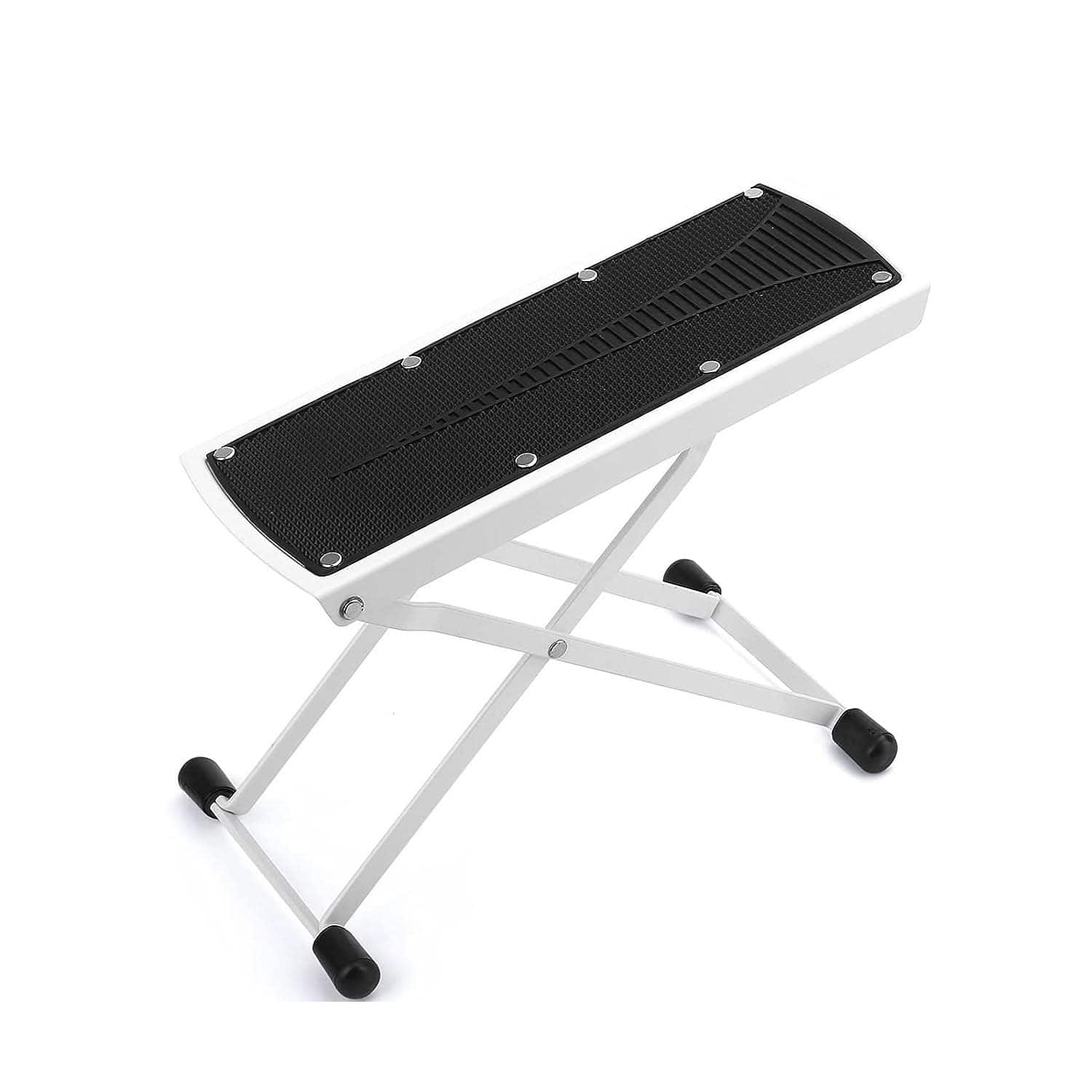Product Details Description: This heavy duty A frame multi guitar stand floor offers unmatched stability and durability with its thick steel construction and reinforced welded joints. Adjustable to fit acoustic, electric, ukulele, cello, banjo, mandolin and bass guitars, this guitar support features soft padding to protect against scratches and dents. Anti-slip rubberized feet ensure your instrument stays secure. The upright guitar stand 2 is easy to use, requiring no special tools for setup, and collapses for convenient portability. Designed for longevity with anti-corrosion paint, this A frame guitar holder provides a secure cradle arm to hold any guitar size. Perfect for musicians seeking a reliable and portable solution to safely display and store their instruments. 1: PORTABLE - Foldable and compact structure, easy to carry and set up, perfect for musicians on the go. The dual compatibility ensures that you can switch between guitar types without needing multiple guitar stands. 2: SECURE LOCK - Offers enhanced security by preventing accidental falls or collapse, keeping the guitar upright and protected from scratches or tipping over. 3: A-FRAME STRUCTURE - Designed to match the body and weight of the guitar, providing enhanced stability and suitability for the instrument. 4: EASY TO USE - The bass guitar stand is designed for quick and hassle-free setup, allowing you to get it ready in minutes without the need for tools. Guitar Stand Specification: Color: White Max Height - 15 Inch Max Width - 12 Inch Length - 19 Inch Square Tube Diameter - 15*30mm Round Tube Diameter - 25mm Material: Steel, Steel, EVA, Rubber Arm Padding Material: EVA Foam Back Padding Material: Rubber Package Includes 1x Guitar Stand