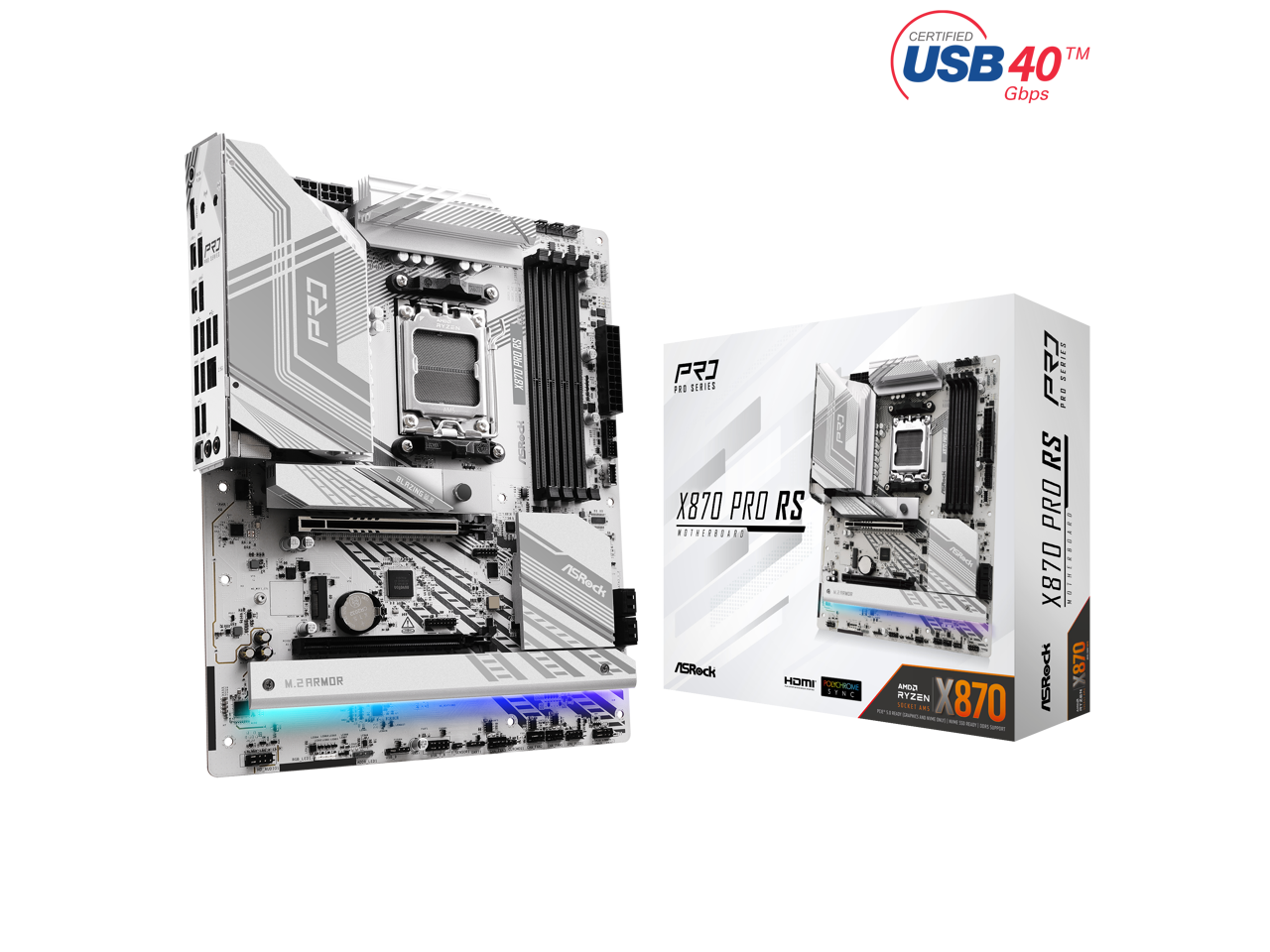 The Ultra Durable X870I AORUS PRO ICE Gaming Desktop Motherboard is engineered for high-performance computing, featuring the AMD X870 chipset and Socket AM5 compatibility, supporting AMD Ryzen 7000, 8000, and 9000 Series processors. Its Mini ITX form factor is perfect for compact builds, while dual DDR5 memory slots accommodate up to 128 GB of memory at speeds up to 8400 MHz. The PCIe 5.0 x16 slot ensures rapid data transfer for GPUs and expansion cards, and the motherboard includes advanced connectivity options like USB4 Type-C, HDMI 2.1, Wi-Fi 7, and 2.5GbE LAN. Additional features include dual M.2 slots, RAID support, and a comprehensive 5-year warranty.