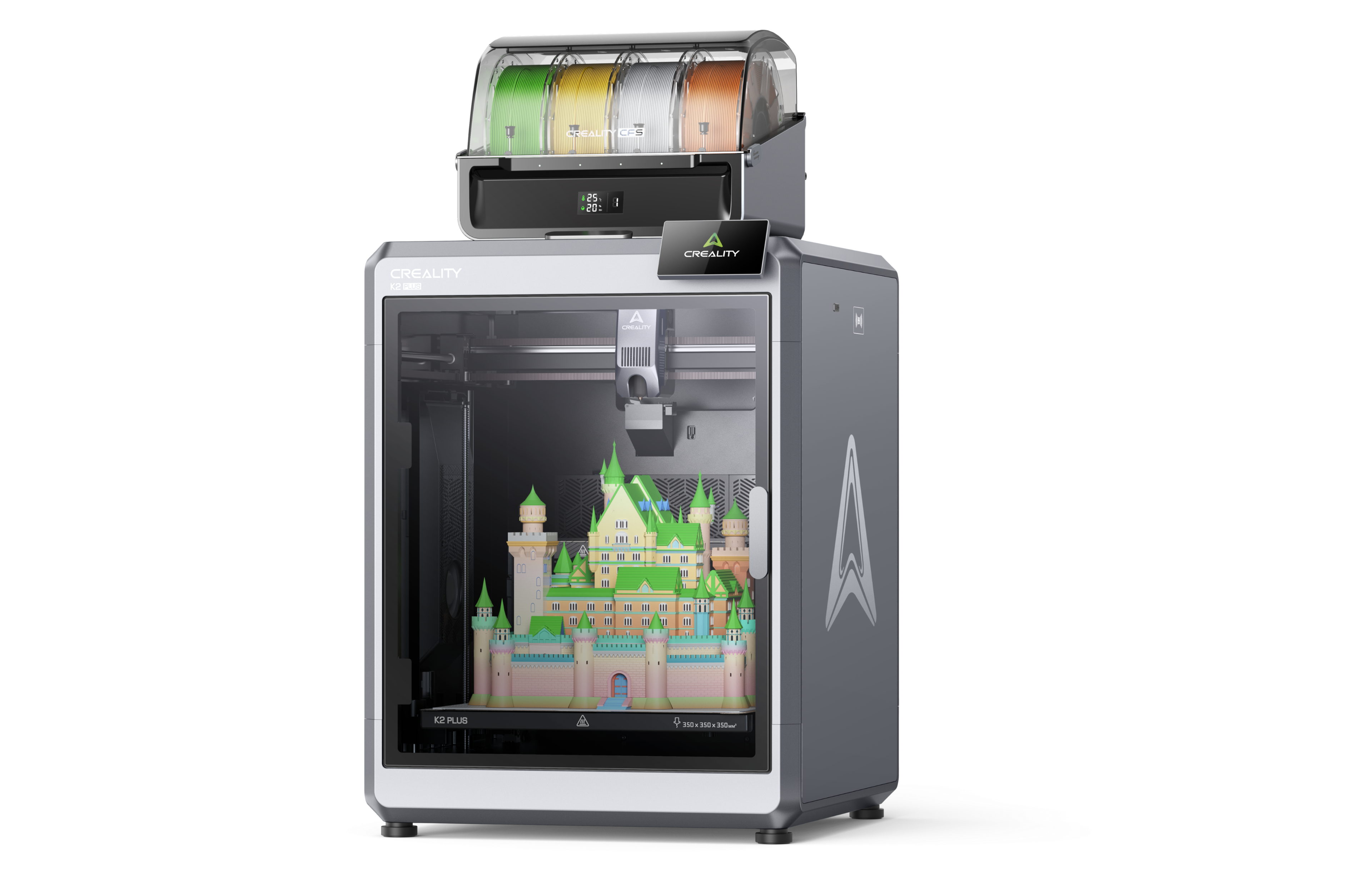 Multi-Color Printing; Full-auto Calibration; Active Flow Rate Compensation; 256 x 256 x 256mm Print Size. Full-size build volume, fully automated calibration, multi-color printing with AMS lite, a perfect gateway to 3D printing.