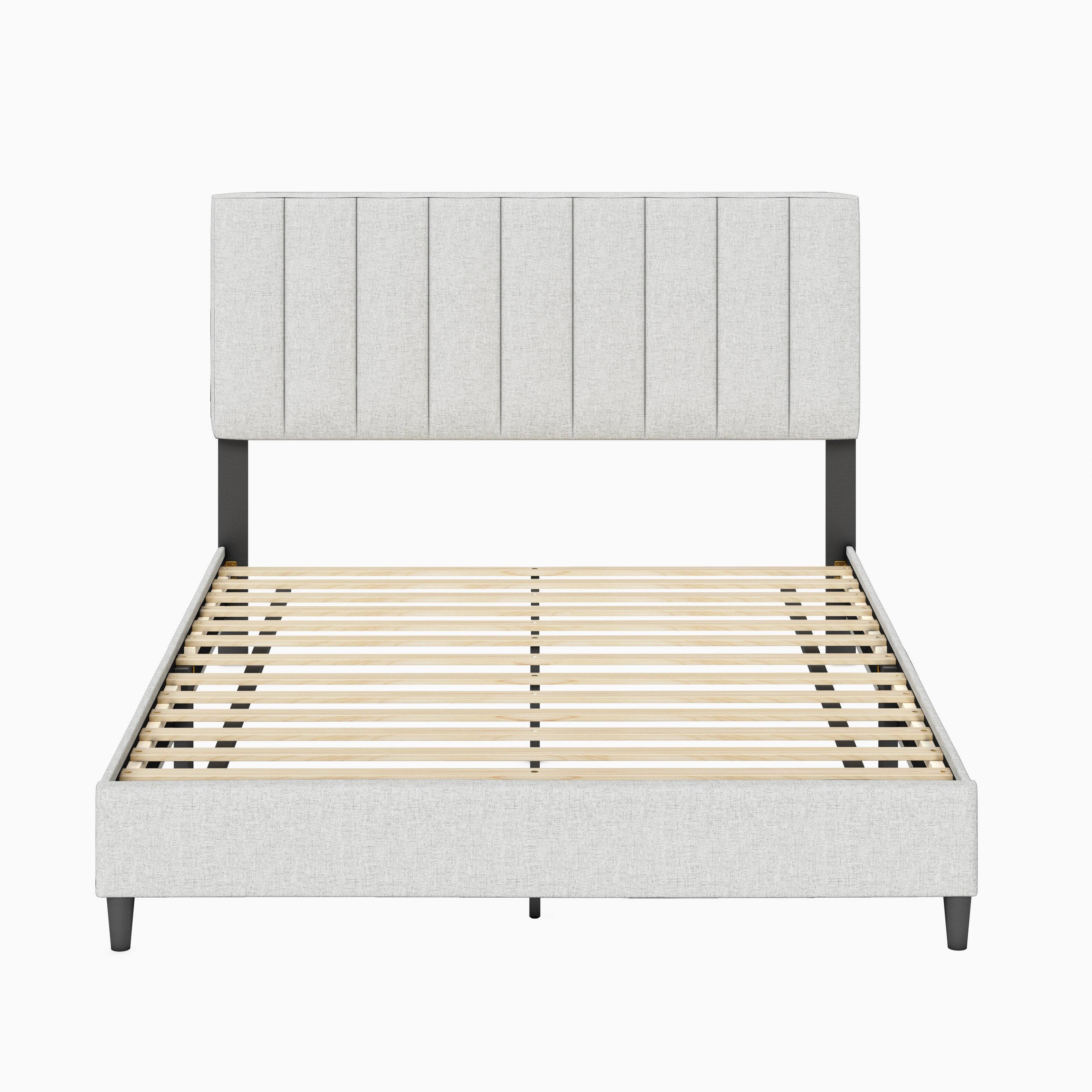 Delivery of this item is restricted to drop-off onlyInspired by the beautiful stylings and neutral colors of modern Scandinavian design, the Triptych Linen upholstered platform bed is the perfect choice for any master bedroom or guest room. Crafted with the utmost attention to detail and modern sophistication, the Triptych uses an attractive tri-panel layout on both the footboard and headboard. A 14 slat structure coupled with solid center support legs provides maximum durability and strength (up to 700 lbs) for your mattress, with or without a boxspring. The Triptych can be easily assembled by one person in under 30 minutes using the provided tools and hardware.
