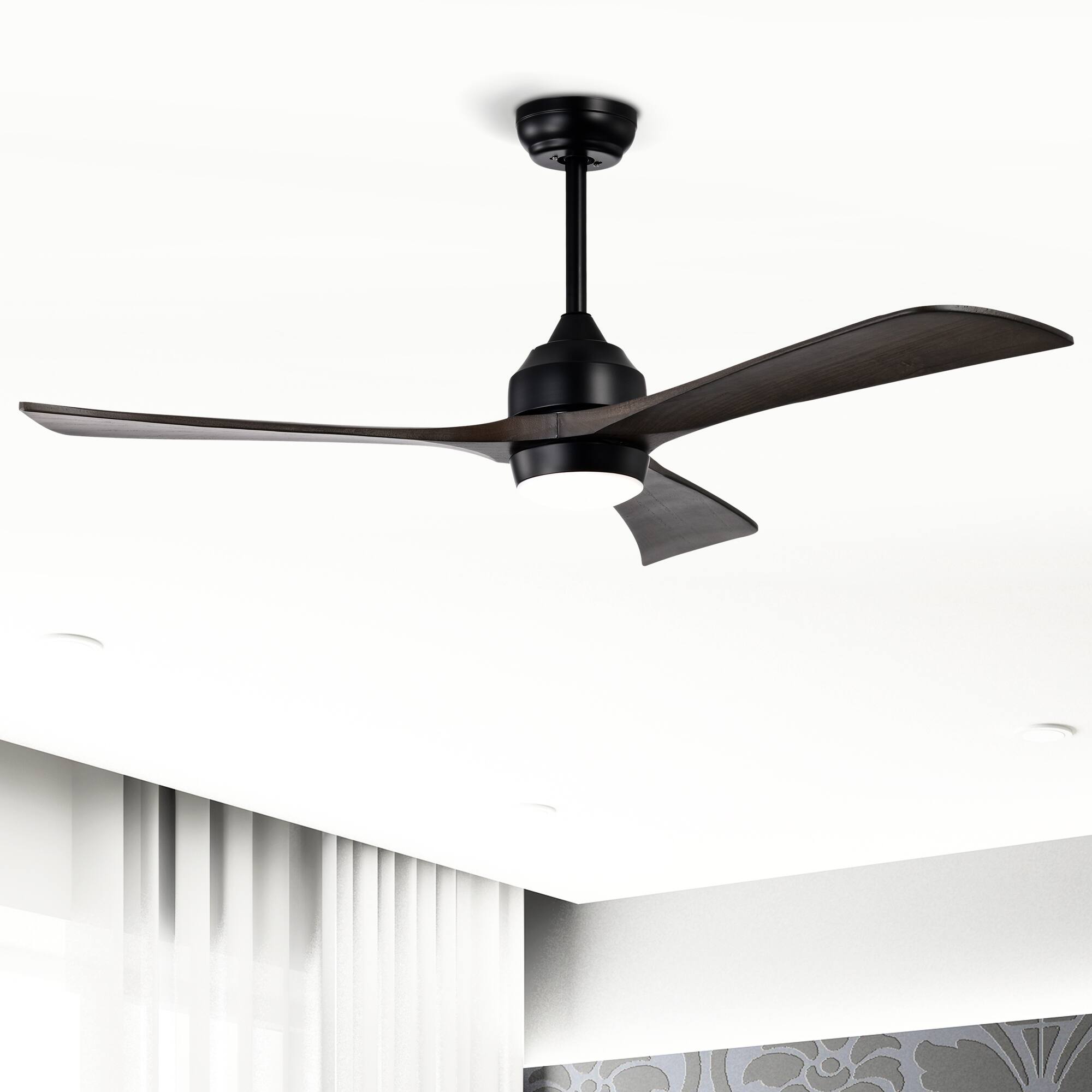 Our ceiling fan is ready to bring your room to the next level. This 52'' ceiling fan nicely fits small/medium/large room to blow evenly airflow and bring lightness. With multiple wind speeds and time settings available, you can freely adjust the fan based on your real needs. A handy remote control is included to make your control easier and more convenient. Thanks to its reversible DC motor, the fan will make your room cool in summer and warm in winter. As the blade is designed in a classic walnut way, it can also bring a touch of elegance to your room. The ceiling fan will surely be a perfect companion in all seasons with you.