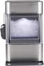 The ICEMAN Pebble Countertop Ice Machine can make chewable pebble-style ice faster than your home freezer. With a capacity of up to 2.4lbs and a removable ice basket, this nugget ice machine is the perfect companion to your kitchen, office, or bar. The one-touch control panel is simple to understand and offers LED indicator lights whenever the machine is making ice, full, self-cleaning, or needs more water. Small pellet ice cubes chill your drinks quickly and are fun to chew. The ice cube maker produces up to 33 pounds of ice each day to ensure you never run out, and the one-touch cleaning function keeps each pellet tasting pure and fresh. Ice serving scoop and removable basket included. Purchase includes a 1-year assurance from ICEMAN. 120 Volts/170 Watts—RJ56-PB18-SS NEW