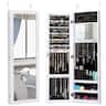This jewelry cabinet with full size mirror is an attractive artwork that is specially designed for all your valuables, helps your jewelry in an organized manner and prevents them from getting tangled, and keeps your jewelry safe and away from kids. Full size mirror is convenient for you to try your clothes or jewelry on. In addition, its chic and stylish design fits with your bedroom decor and the wall/door-mounted feature makes it space saving and pefect for smaller rooms. With it, your life will be convenient and self-consistent.