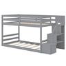 You little ones will love to possess their own-sized beds!Crafted from sturdy wooden slats, this twin over twin bunk bed frame is definitely strong enough to support your growing kids. The thoughtful low-floor design makes this bunk bed an excellent choice for younger children or rooms with lower ceilings. One of the standout features of this floor bunk bed is the staircase storage. Each step doubles as a drawer, offering ample space to store clothes, toys, or books. Moreover, high guardrails line the upper bunk, providing additional safety. This twin over twin bunk bed takes full advantage of vertical space, which is an ideal solution for kids, teens, and adults.