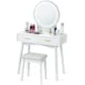 Our dressing table set includes a mirrored dressing table with three drawers and a stool. The table with mirror and drawers is of great value. The mirror has a round shape, in front of which you can well make yourself up. And a lot of things can be stored in the three storage drawers and the spacious table top. For example, your makeup, jewelries, accessories, ornaments and other things. Made of wood and MDF, our product is stable and can serve you for a long time.