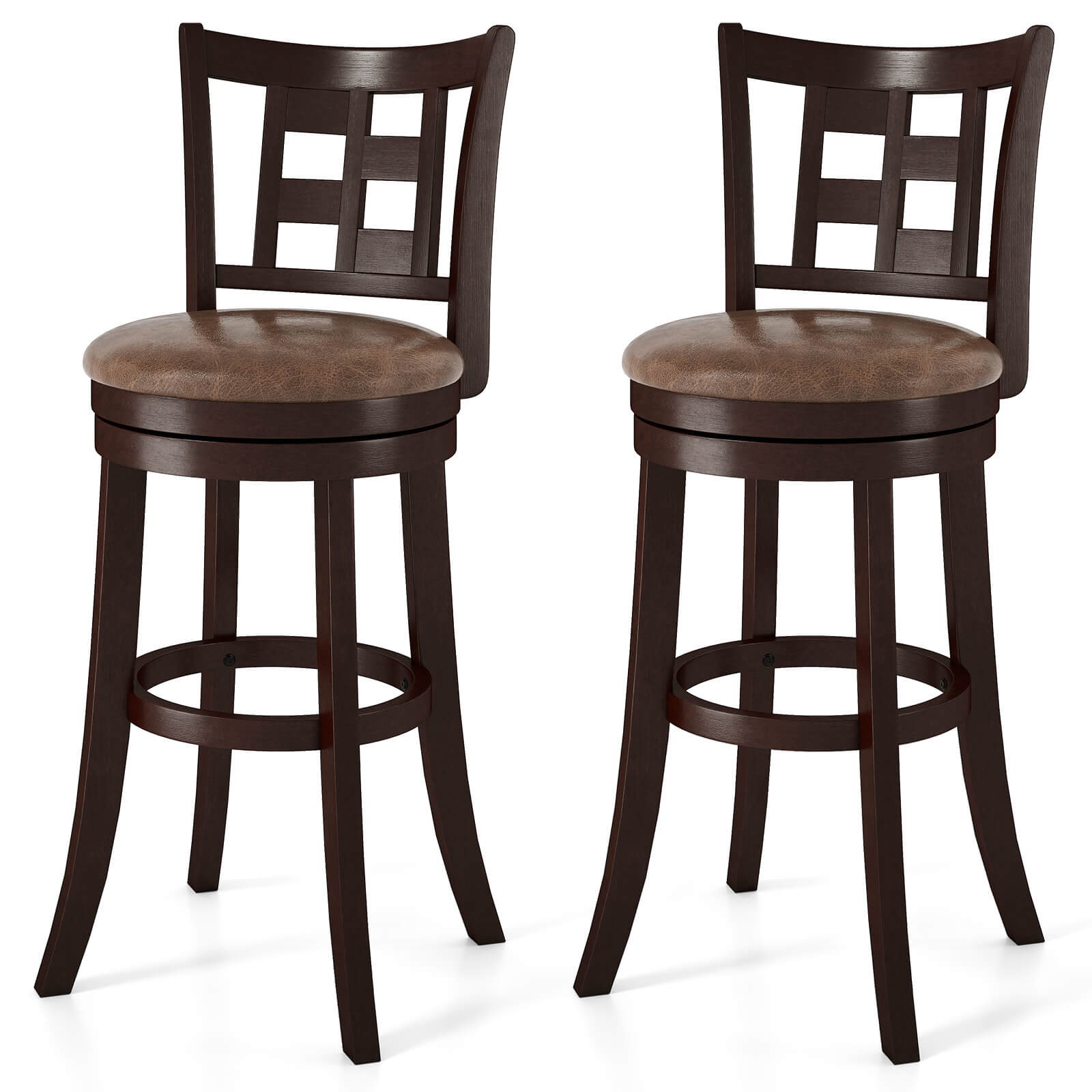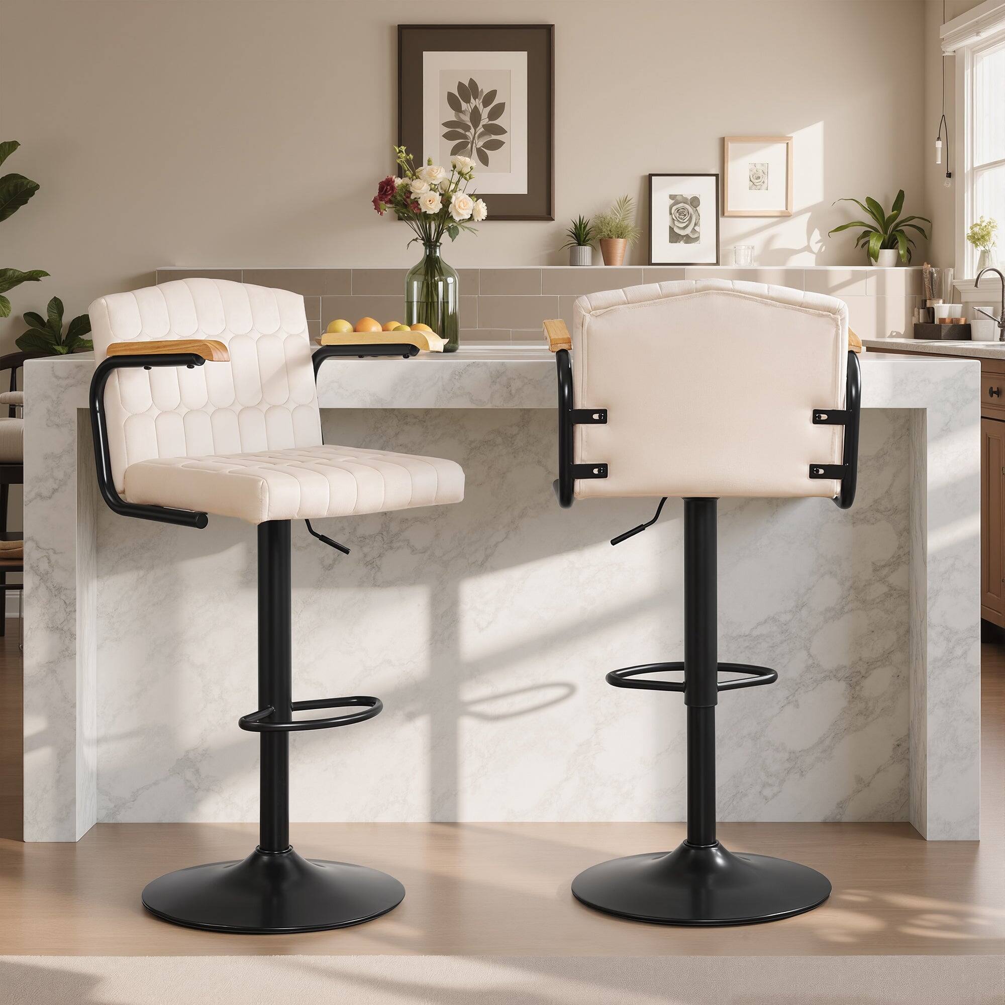 Ready to elevate your home bar or kitchen island with a touch of elegance? Our well-crafted upholstered barstools feature 360° swivel and adjustable heights for the ultimate in dynamic seating. Wrapped in sleek PU leather, they ensure not only a chic appeal but also unmatched durability. Immerse in comfort with plush backrests and footrests that make long conversations a breeze. With a sturdy, slip-resistant metal base, these island stools offer both safety and sophistication. Don’t miss out—make these versatile stools yours and be the envy of every guest!