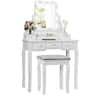 Add timeless style and smart storage to your routine with this versatile vanity set. Enjoy adjustable LED lighting, organized drawers, and a cozy stool—all in a sturdy design that easily doubles as a desk to keep your space neat and inviting.