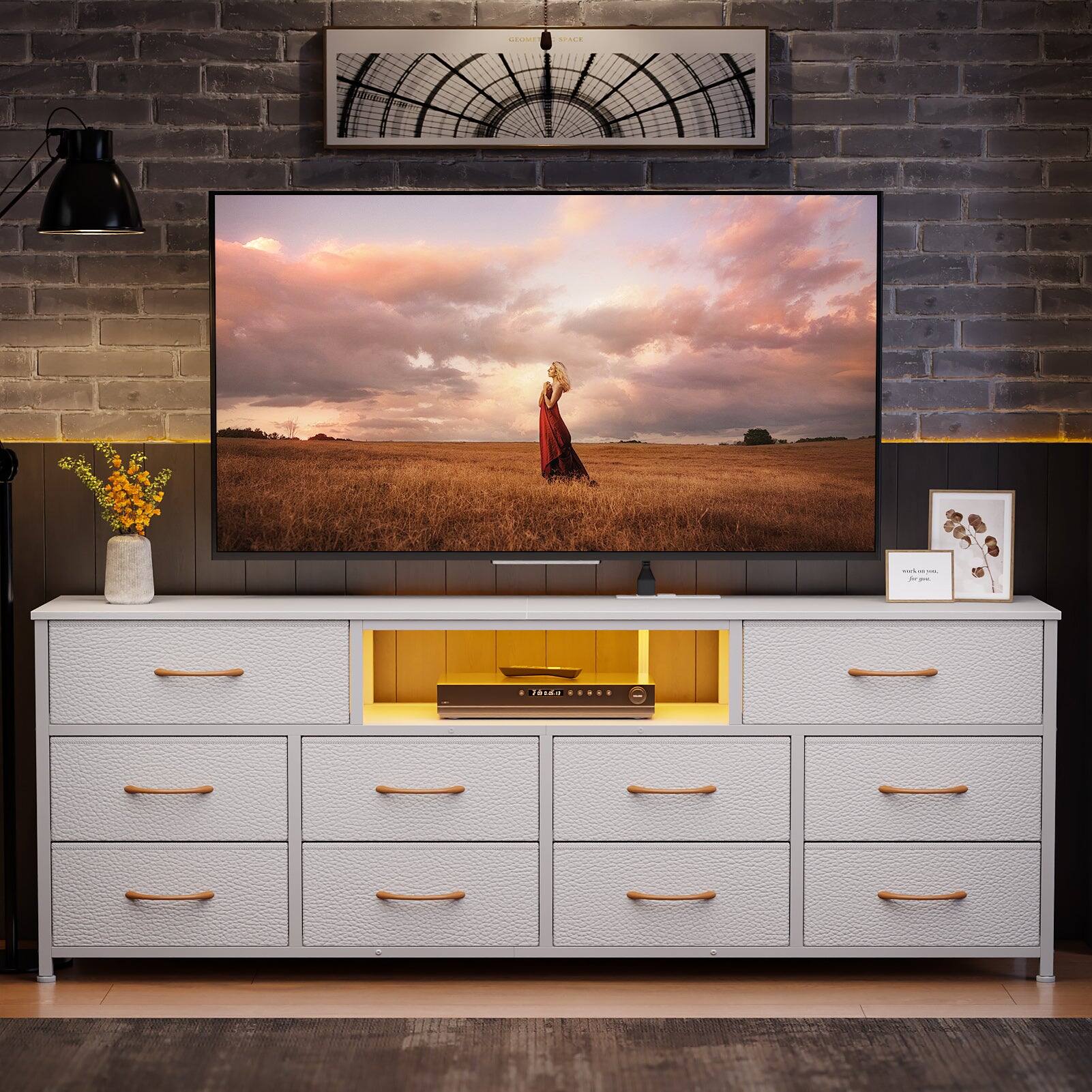 Modern LED Dresser combines style and function with integrated lighting that creates a warm ambiance. It offers generous storage across 10 drawers, built with sturdy materials for lasting stability. Easy to assemble, it elegantly organizes any living space, bedroom, or hallway.