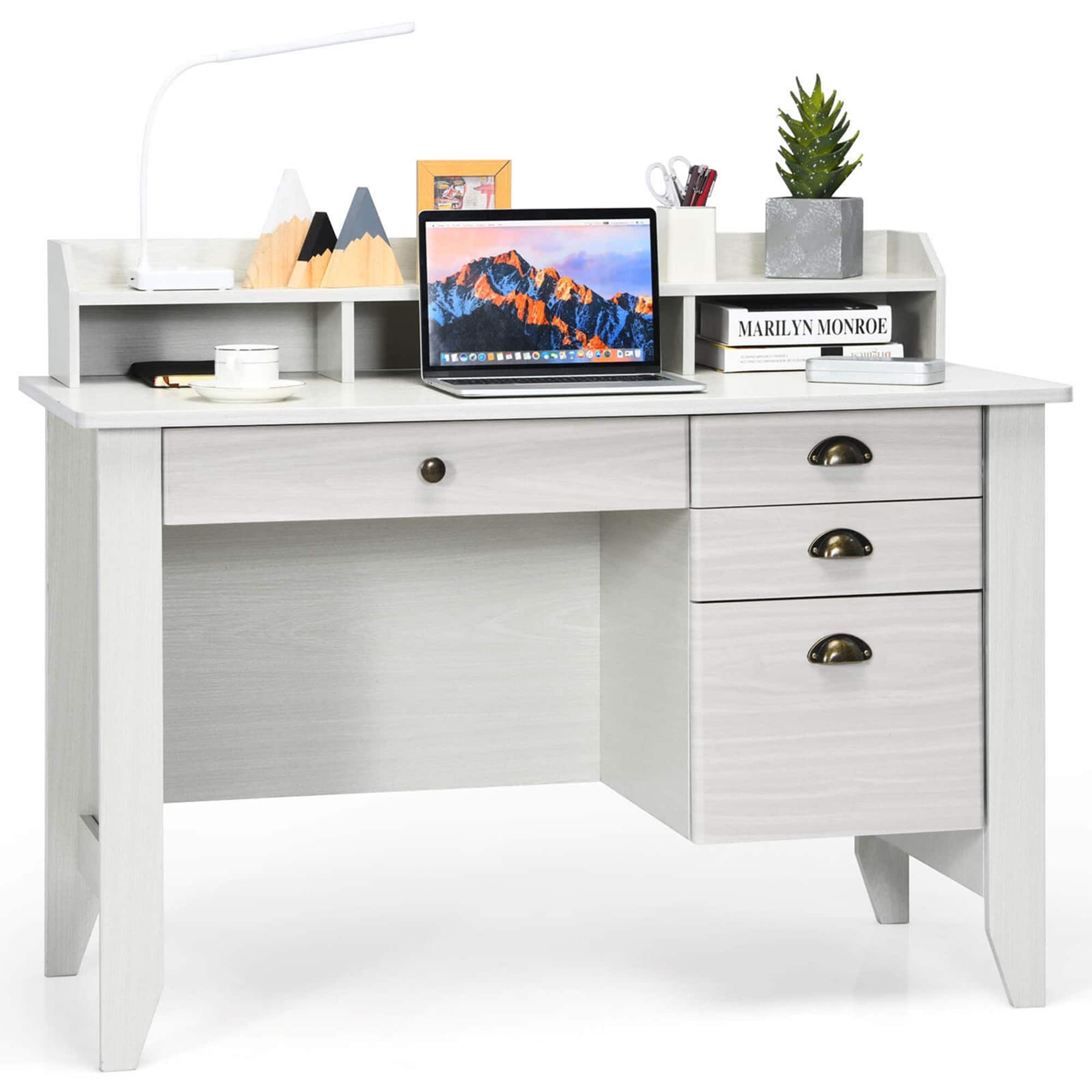This contemporary writing desk combines functionality and style with its integrated USB charging port and practical storage solutions. Crafted from durable materials including metal and synthetic wood, the desk features a spacious rectangular work surface capable of supporting up to 70 pounds. The design includes one convenient storage drawer with smooth 3/4 extension drawer glides and three separate storage compartments for optimal organization. With generous leg space measuring 40 inches in length and 20 inches in depth, this desk ensures comfortable seating for extended work sessions. The side metal drawer glide system provides reliable operation while the sturdy metal base offers exceptional stability. Perfect for home offices, study areas, or workspace settings, this desk accommodates various devices and supplies with its thoughtful layout. The clean lines and versatile design make it suitable for multiple decor styles. Easy to assemble with clear instructions, this desk arrives ready to enhance your productivity and organization. The substantial construction ensures long-lasting performance while the practical features address modern workspace needs. Whether used for computer work, writing, or general office tasks, this desk delivers both form and function in an attractive package that maximizes limited space effectively.