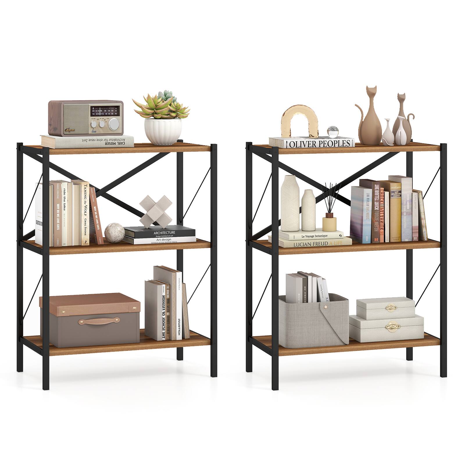 Showcase elegance and practicality with this 4-tier modern bookshelf!Designed for versatile use, the open storage book shelf functions effortlessly as a bookshelf, plant stand or organizer in various rooms, while its open design beautifully showcases your decorations. Plus, this industrial and stylish bookcase combines ample storage space with exceptional structural strength, featuring sturdy 0.7'' thick boards supported by a heavy-duty metal frame and X-braced reinforcement for lasting stability.