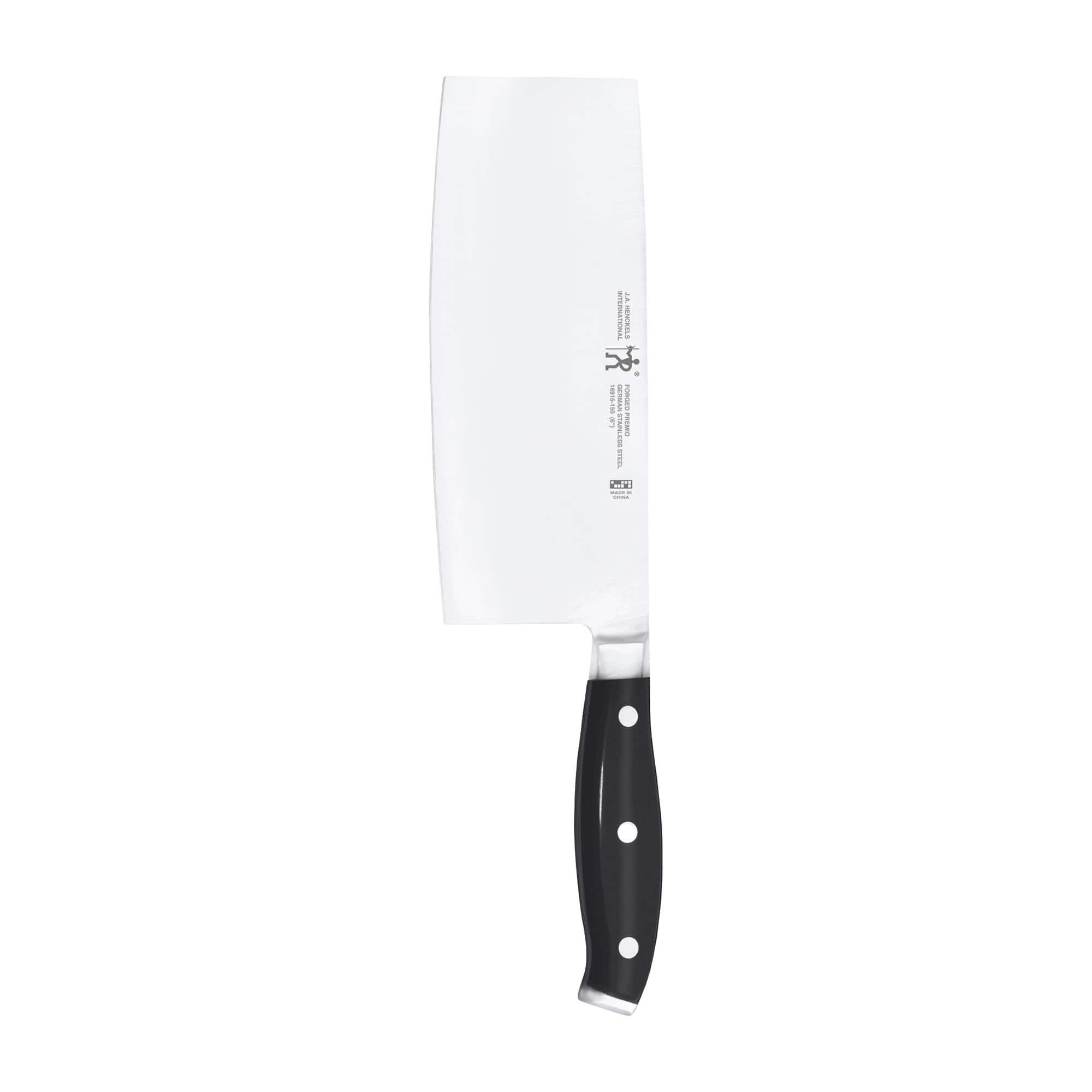Equip your kitchen for less with this essential knife set. Since 1895, Henckels has been making high quality, everyday knives at an exceptional value. The Henckels Solution Knife Set is stocked with tools to tackle every kitchen task. The handsome hardwood block handily keeps this useful knife collection within reach on your countertop.Fabricated from high-quality stainless steel, the single-piece, precision-stamped knife blades are lightweight without sacrificing strength and durability. Along with the ergonomic, traditional triple-rivet handle, enjoy maximum maneuverability and fatigue-free cutting. Honed for long-lasting sharpness, the fine-edge blades boast precision cutting. Curved for comfort, the break-proof, triple-rivet handles are pleasant to grip, giving you the control you need to slice through tougher cuts with ease.