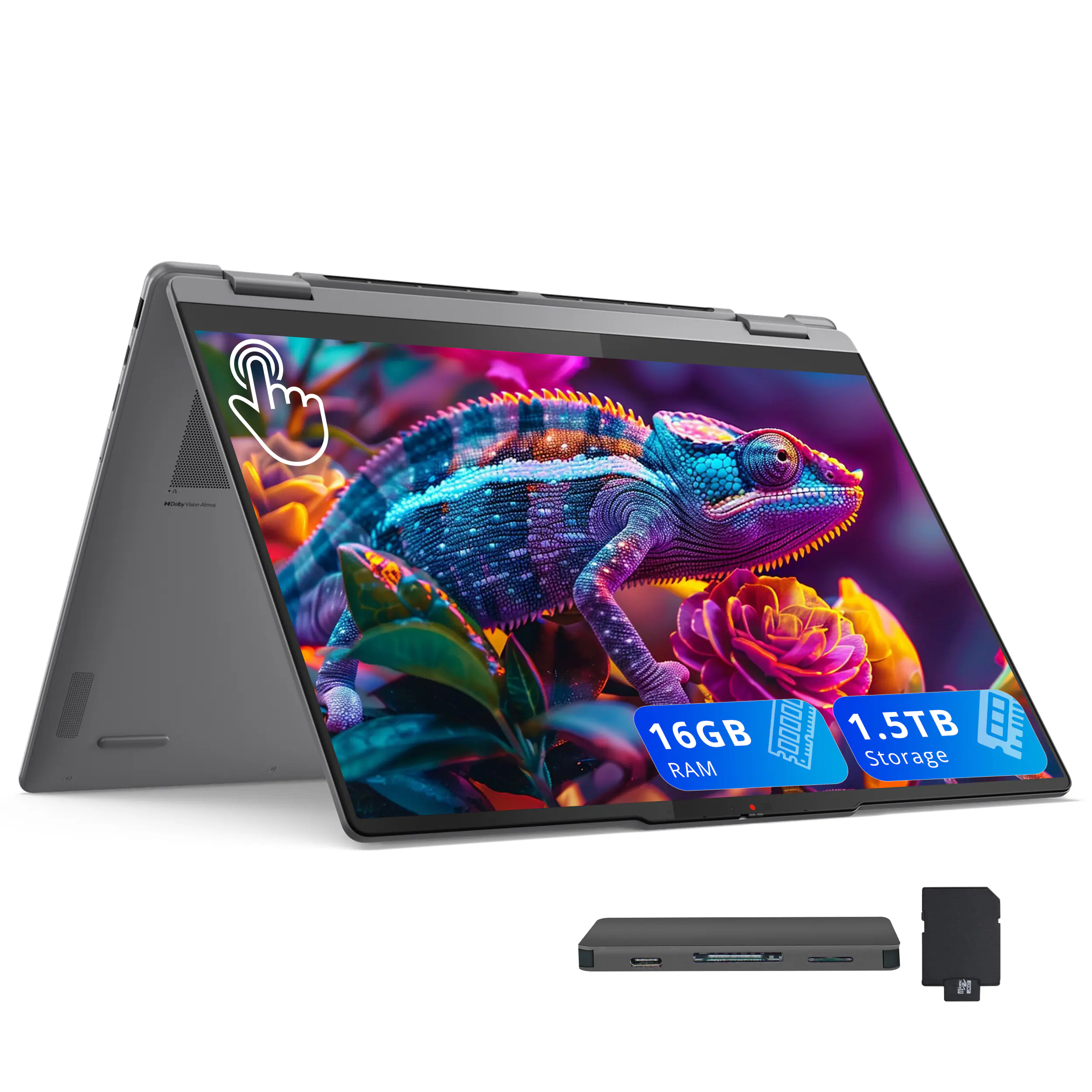 Bring your ideas to life with the Yoga 7 2-in-1. Its 360° design, touchscreen, and optional Yoga Pen let you sketch, present, or edit with ease. Powered by an AMD Ryzen AI 5 processor and a 40+ TOPS NPU, it finely balances power and efficiency. The 16" PureSight LCD display with 60Hz refresh and Dolby Vision delivers stunning visuals.