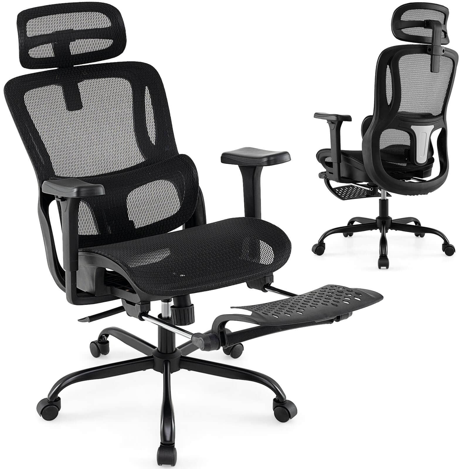 The gaming chair surface is made of highly breathable mesh fabric, which has good heat dissipation.The widened wing backrest, along with 30D one-piece molded high-density memory foam headrest and lumbar support, follows ergonomics.The 4-inch adjustable height, 90° - 135° recliner backrest, retractable footrest and soft cushion-linked armrests enables the gaming chair to accommodate different heights and usage preferences.