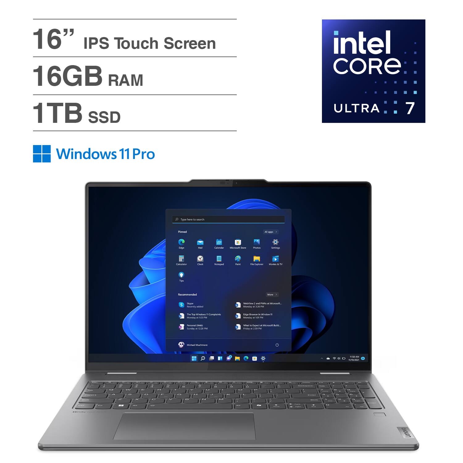 It’s inspiration all around with the Lenovo Yoga 7i 2-in-1, delivering 360° of flexibility, impressive performance, and ultra-immersive audio-visuals. Primed with creating power from up to the latest Intel Core Ultra processor, you can unleash greatness in every way. The larger 16” 16:10 WUXGA display makes entertainment and creative projects come to life like never before. All that with a fast-charging battery and all the ports you need, it's your art studio, home office, and cinema all in one.
