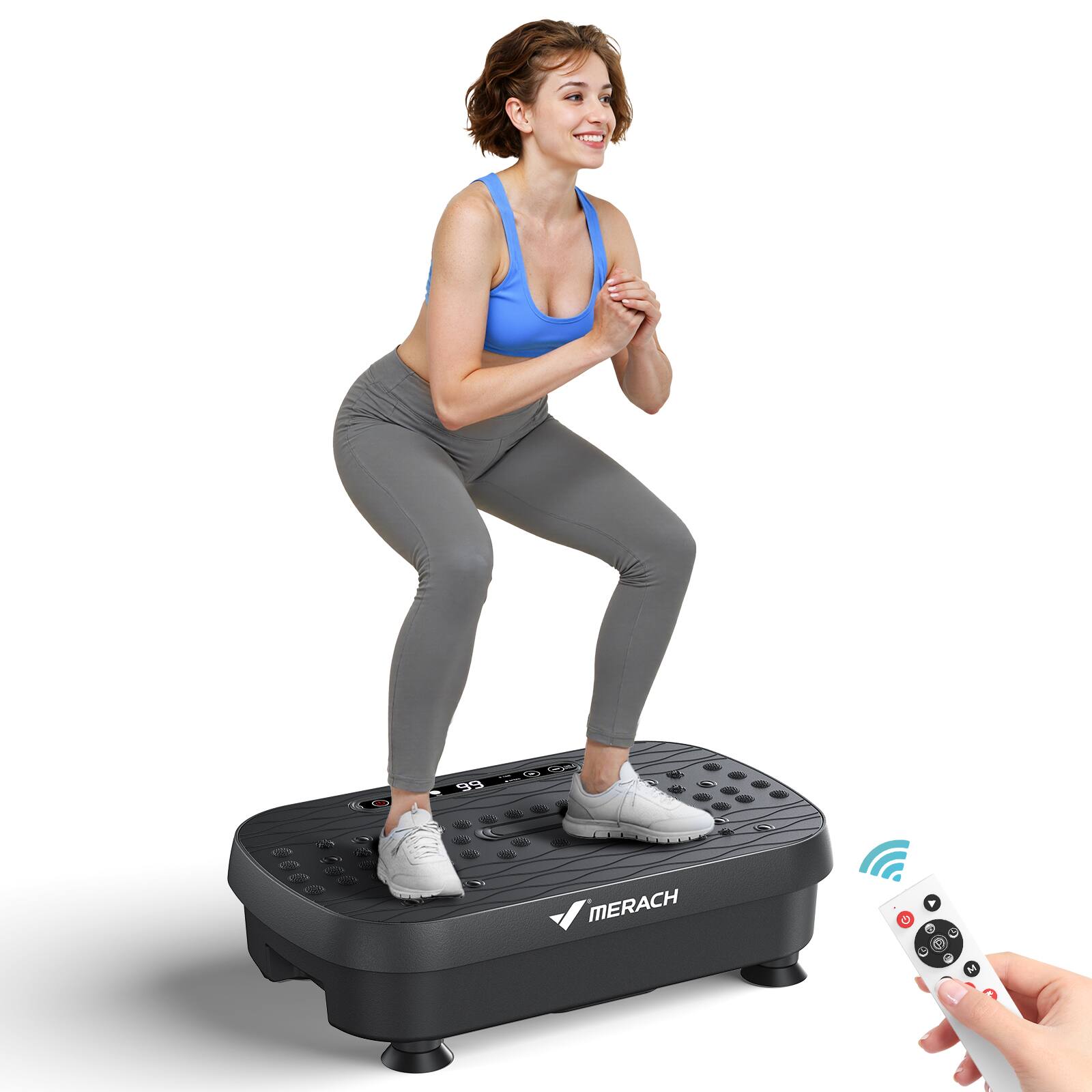 Experience intense, customizable workouts with the MERACH Vibration Plate. Features Manual & Auto modes, 150W motor, and deep vibrations for muscle activation and lymphatic support. Compact, durable, and Bluetooth-compatible for a complete fitness experience.