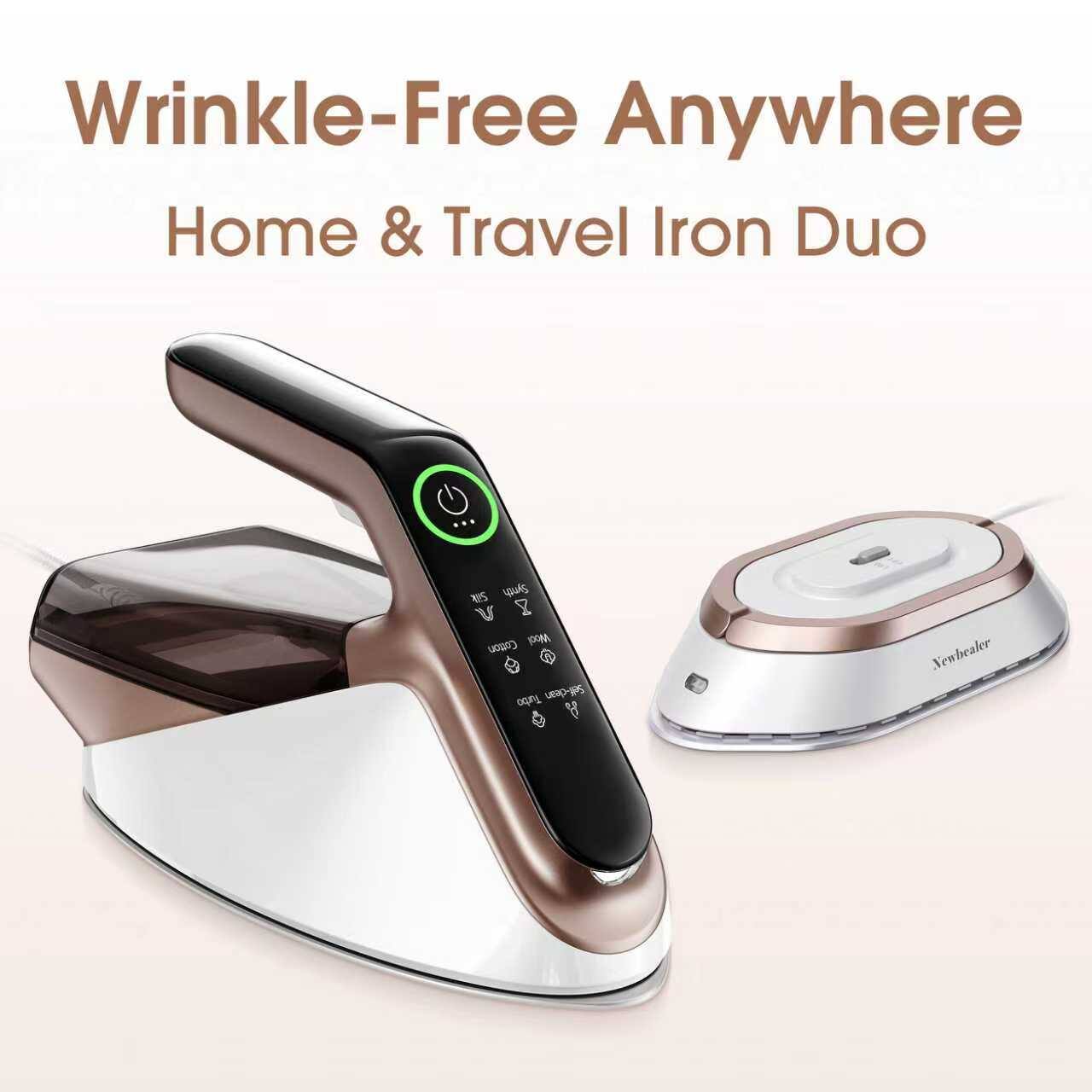 Newbealer ProTravel Steamer: Demolish wrinkles on wool suits, linen, and delicates in 20 seconds with 1200W power. Features manual dual-voltage switching (120V US/JP · 240V EU/AU) for global hotel safety. 360° leak-proof tech enables vertical/horizontal steaming without spills. The transparent 180mL tank provides 10 mins of 20g/min steam (~5 garments), with auto-cleaning to prevent buildup (use distilled water). Heavy-duty 1.72lb build prioritizes performance over ultralight portability. Includes fabric brush, heat-resistant glove, and travel pouch. Plug adapter required/sold separately.