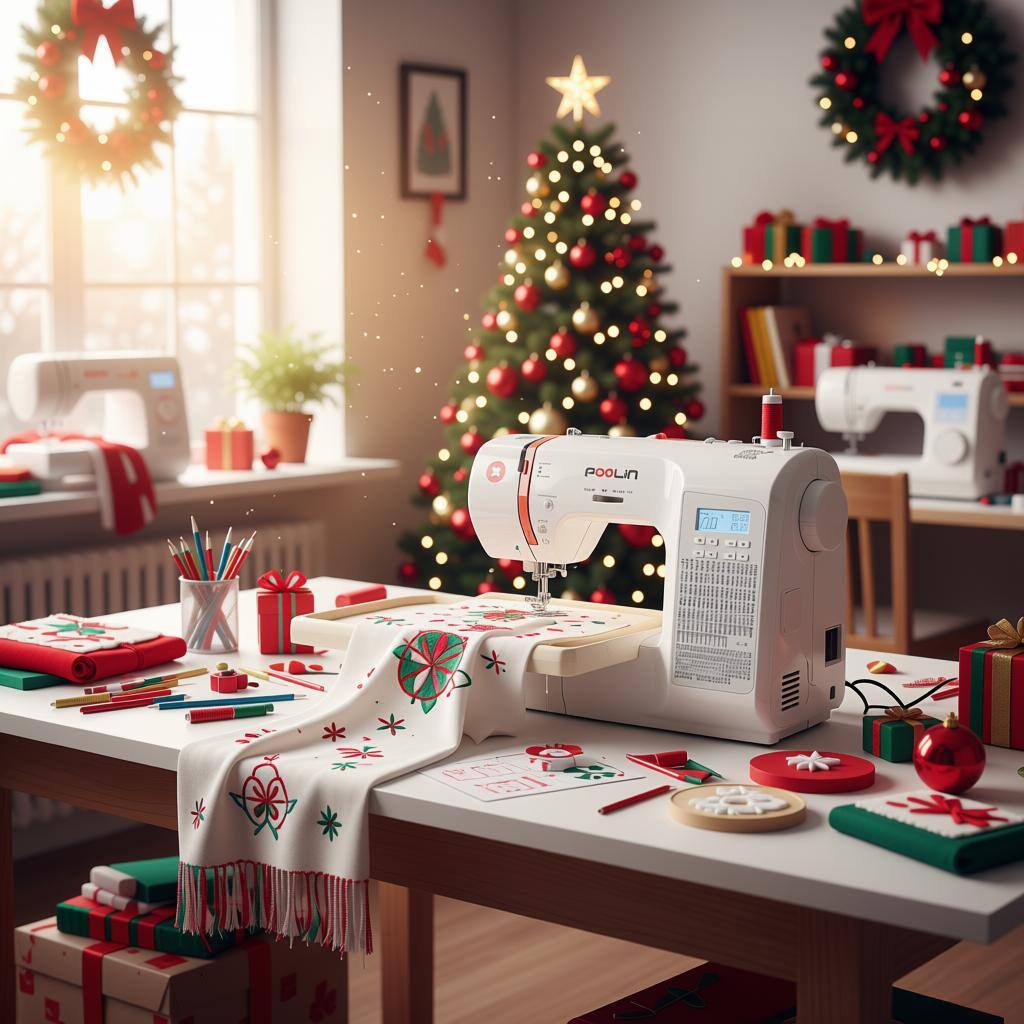 POOLIN EOC06-RE red version USA Best Seller computerized embroidery machine 7.9x11" larger area in this price range, 7" LCD touchscreen like your phone with starter supplies kit, WIFI transmission & free online Institch digitizing software, online 8,000 real users group 860spm super stable for business owners and Christmas gift
