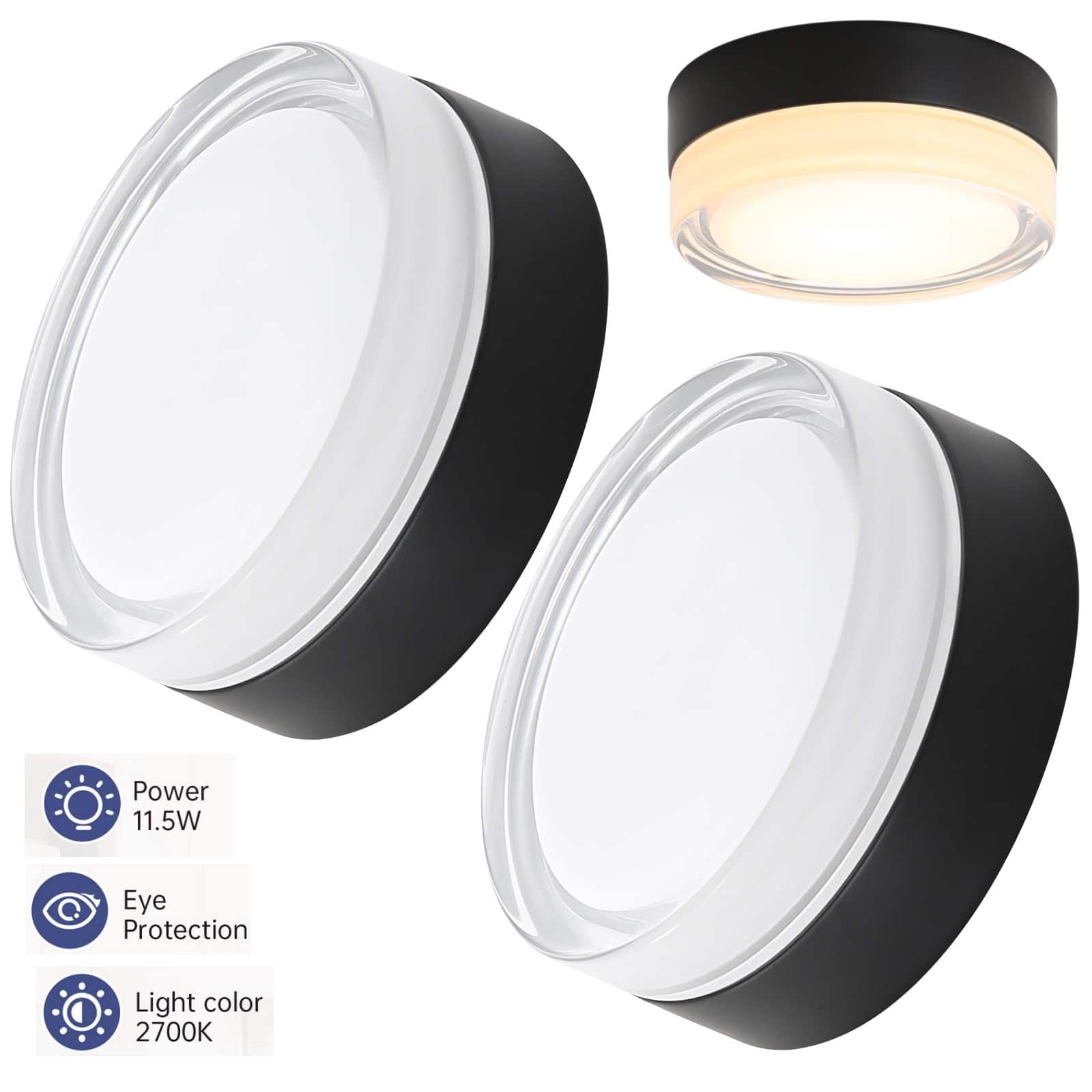 These led ceiling light flush mount feature a 11.5W LED panel . It's an energy-saving choice, and with a Color Rendering Index (CRI) of 80+, it renders colors accurately while protecting your eyes from harsh light. These black light fixtures ceiling mount can be preset to 2700k temperatures,Simply slide the button before installation. ETL listed for your safety. These semi flush mount ceiling light have a lifespan of 20,000 hours and is backed by a 2-year manufacturer's warranty. Ideal for the bedroom, laundry, foyer, storage room, kitchen, dining room, living room, hallway, entryway, stairway, corridor, and more. Great gift choice for your friends and family. Perfect in kitchens over sinks, a breakfast nook / kitchenette, in living rooms / dining rooms, in bathrooms / powder rooms or guest bedrooms, to illuminate hallways / entryways or in laundry rooms. This sleek LED flush mount is very popular in hospitality settings such as hotels as well as custom homes and apartments. Even a great addition to closets and pantries!
