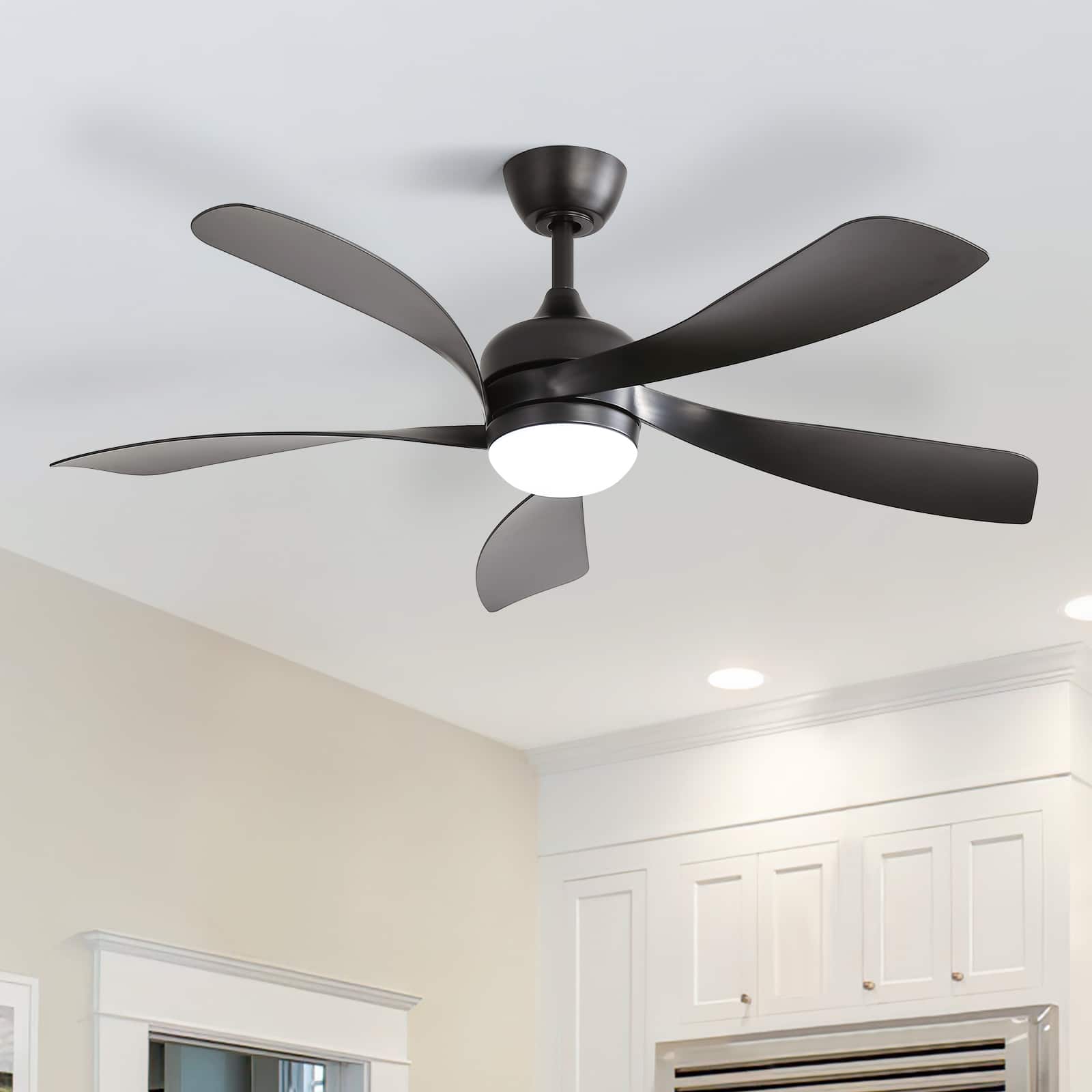 Upgrade your home comfort with the Breezary 52-inch LED ceiling fan, designed to combine style, performance, and convenience. Featuring a modern all-black finish with five durable plywood blades, this fan delivers powerful yet whisper-quiet airflow through its energy-efficient DC motor. The integrated LED light offers three adjustable color temperatures (3000K/4000K/6500K) to suit any mood or activity. With six fan speeds, a reversible motor for year-round use, built-in timer options, and an easy-to-use remote control, this ceiling fan provides the perfect balance of cooling, lighting, and everyday functionality for bedrooms, living rooms, and beyond.
