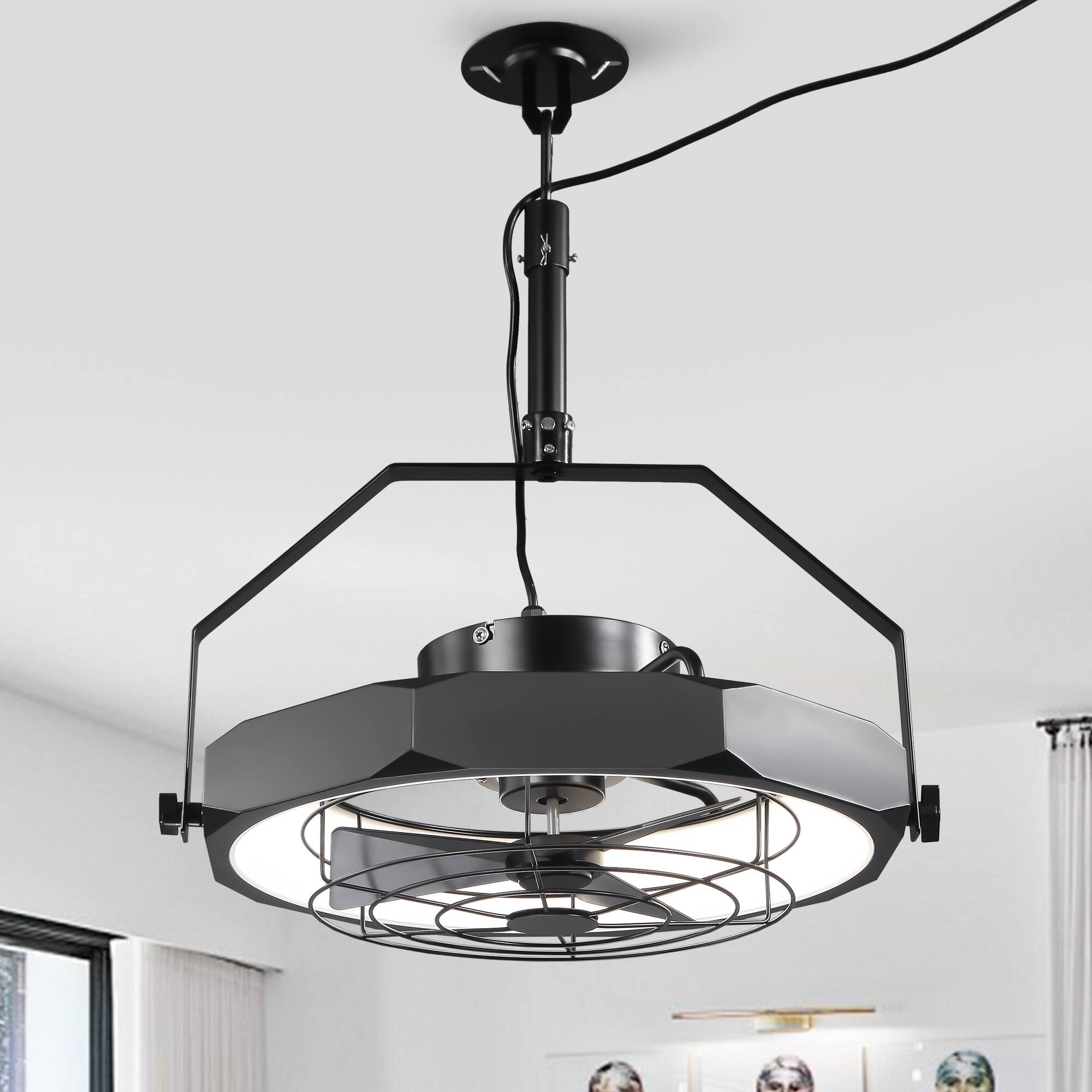 This 19-inch ceiling fan combines traditional elegance with modern functionality. Featuring a luxurious crystal-embedded iron and glass cage design, it doubles as both a light fixture and a fan. The fan includes seven transparent ABS blades, powered by an energy-efficient DC motor for smooth and quiet airflow. With four bulb holders (bulbs not included) supporting up to 9W each, it provides warm 2700K ambient lighting. Remote-controlled for convenience, the fan offers six-speed settings, a timer function, and reversible airflow, making it suitable for year-round use in bedrooms, dining rooms, or living spaces.