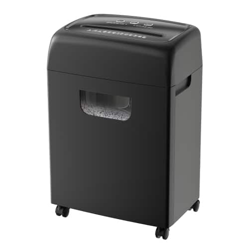 From credit card and Social Security numbers to sensitive tax or client information, you have a lot to lose if your data falls into the wrong hands. Thankfully, data breaches and identity theft aren’t inevitable. By crosscutting your items into small pieces, you can have peace of mind that your most sensitive data is protected. This shredder cuts up to 10 sheets of standard-sized paper at once and can handle staples, small paperclips, CDs and credit cards to make your task easier. A built-in wastebasket collects your shredded waste for later disposal. A quick glance through the viewing window lets you know when it needs to be emptied. Protect your important information with the Insignia 10-Sheet Crosscut Paper/CD Shredder.