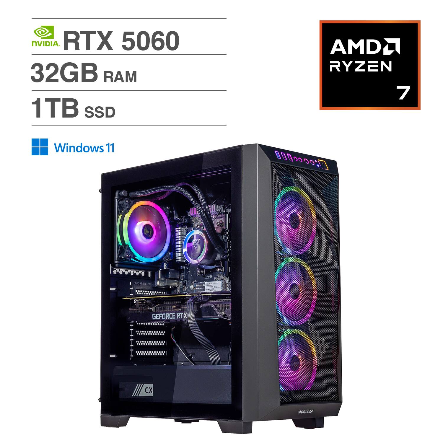 Dominate virtual battlefields with this CyberPowerPC Gamer Xtreme gaming desktop computer. The 10-core Intel Core i5 processor and 16GB of RAM support seamless multitasking, and the 1TB SSD provides fast start-ups and in-game load times. This CyberPowerPC Gamer Xtreme gaming desktop computer comes with an NVIDIA GeForce RTX 5060 graphics card for immersive, stutter-free action.
