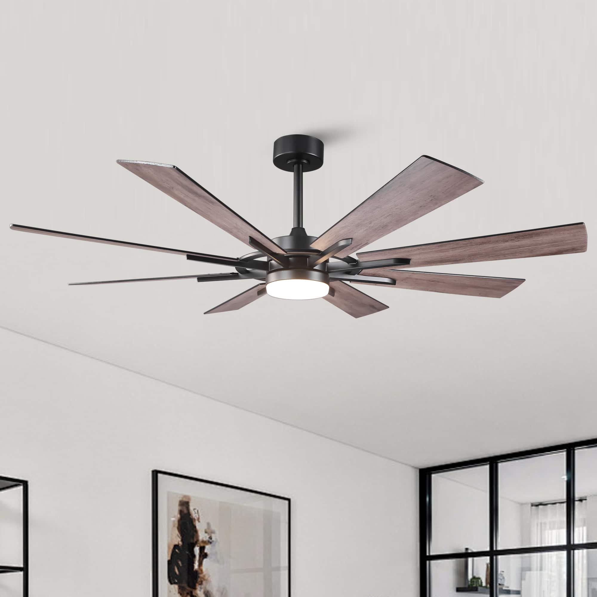 Enhance your living or working space with the Breezary 72 - inch ceiling fan, a masterpiece of functionality and design. Boasting a generous 72 - inch diameter, this fan features 8 dual - tone plywood blades driven by a 45W DC motor, providing powerful yet quiet air circulation. With six speed settings, you can effortlessly adjust the airflow to suit your comfort needs, whether it’s a gentle breeze for relaxation or a brisk flow for rapid cooling. The integrated 24W LED lighting system offers exceptional versatility. With three color temperatures—3000K for warm, inviting light; 4000K for neutral illumination; and 5700K for bright, energizing glow—you can transform the atmosphere of any room with a simple click. Installation is a breeze with the included 6 - inch and 20 - inch downrods, and the fan can be mounted at a 15° angle. The 12° blade pitch maximizes air movement, ensuring efficient cooling across large areas. Operate the fan with ease using the included remote control. Adjust the six - speed settings, set the timer for 1, 4, or 8 hours to conserve energy, and enjoy the convenience of the memory function. This feature automatically restores the previous lighting color temperature and brightness 15 seconds after a power outage, eliminating the need to readjust. Built with a durable ABS shade and reliable plywood blades, the Breezary 72 - inch ceiling fan combines long - lasting performance with a sophisticated look. It’s the perfect addition to elevate the comfort and style of your home or office.