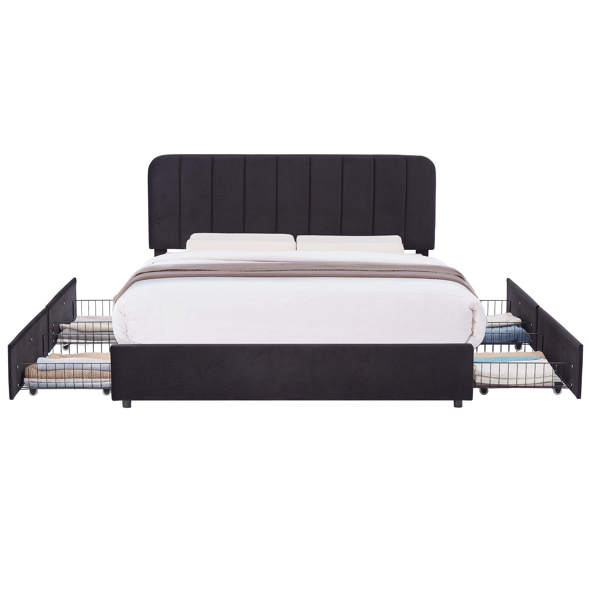 Delivery of this item is restricted to drop-off onlyTransform your bedroom with this full size LED bed frame with headboard, featuring smart RGB lights on both the headboard and footboard for fully customizable ambience. Designed as a full bed frame with storage drawers and LED lights, it also integrates USB and Type‑C ports on each side to power up to four devices at once. The sturdy full platform bed frame no box spring needed includes side pockets and a high weight capacity, creating a modern, clutter‑free sleep space.