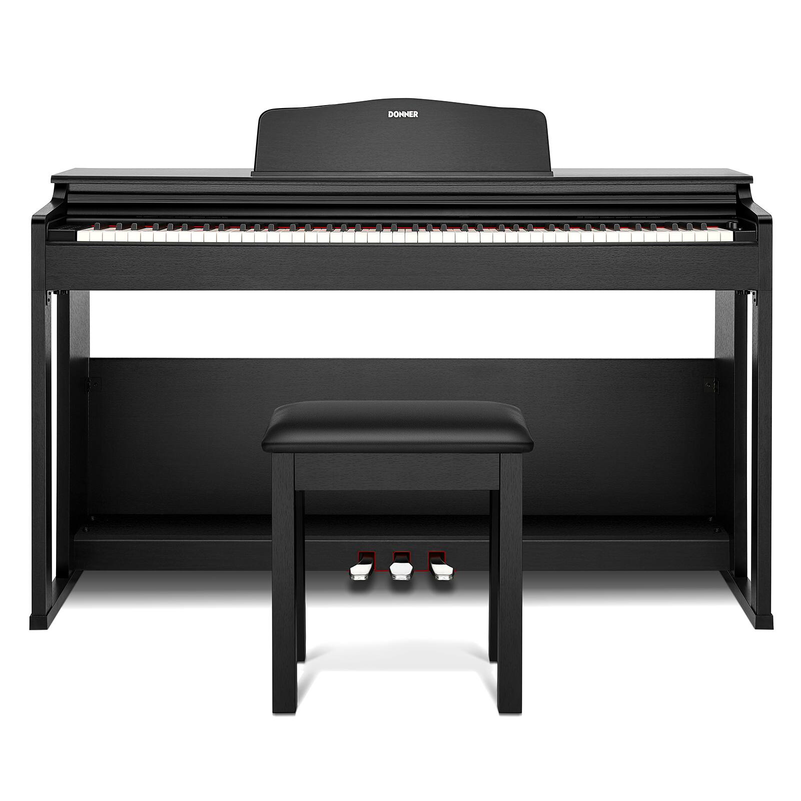 Hold nothing back and experience your newest companion on your journey toward musical excellence. This 88- Key Electronic Keyboard comes complete with a stand, holder, and sustain pedal. Hold out notes with the included pedal for a professional sound you can control, and trust the non-slip bottom for stability and pure quality. This piano is designed to look and play like an acoustic without the large size; the perfect fit for small-space owners. Create your own full masterpiece when you mix timbres and rhythms or explore the keyboard percussion sounds. Use the itemizer to customize your sound between piano, bass, electric piano, guitar, church organ, strings, and other instruments.