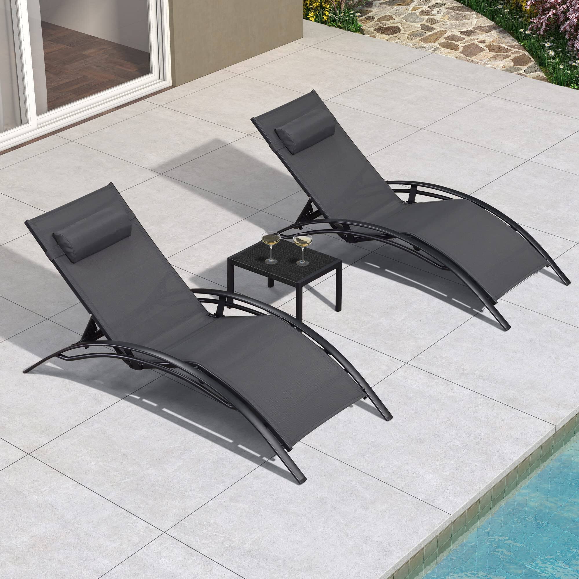 Lie back and relax with the only seat you need! Built with freely adjustable back and footrests so you can find and enjoy the perfect angle (Up to 160 degrees) Get ready to take your chairs anywhere! The compact folding design makes these chairs easy to carry to your next outing, whether that's camping, the beach, or the park. Keep your favorite drinks and media devices close at hand for uninterrupted relaxation! The detachable holding tray comes with a tablet rest, 2 cup holders, and a phone mount. Premium materials like weather-resistant fabric and a heavy-duty frame make this chair ideal for many trips. Weather-resistant steel frame and textilene fabric will last for years of comfort. A removable headrest adds extra support and comfort. Experience a higher level of comfort with a set of recliners that will turn any spot into your private oasis; it's just a superior seat.