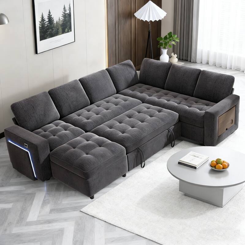 Convenient Pull-Out Sleeper: Transform your sectional sofa into a cozy bed effortlessly with the integrated pull-out sleeper sofa, providing a comfortable sleeping surface for guests or family movie nightStorage seats: The single seat, loveseat, and ottoman modules are designed with storage space underneath, which can be easily accessed by lifting the seating cushion, keeping your living space organized and clutter-free.Tool-free Assembly: This sectional sleeper sofa bed requires no tools for assembly, allowing you to enjoy your furniture piece without any hassle or frustration.Multi-Functional Comfort: Designed with a sturdy frame and plush cushions, it ensures both durability and comfort for everyday use. Seamlessly transition between modular couch and sleeping sofa modes with this versatile sofa bed.Modular Customization: Tailor your seating arrangement to perfection with this modular sleeper sofa, offering infinite configurations to suit your space.