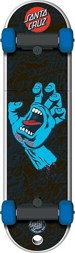 Features Santa Cruz Screaming Hand graphics with a rubberized texture and fully functional wheels for a fun appearance.