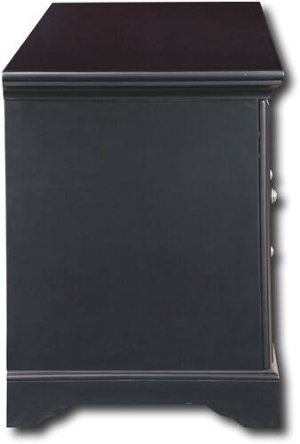 The black antique finish of this TV stand blends elegantly with contemporary TVs and A/V components and adds a touch of style to your home entertainment area. The 2 side cabinets with 2 durable shelves conveniently hold up to 4 A/V components.