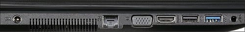 VGA port (mini D-sub 15-pin). 2 audio jacks: audio-out/microphone-in.